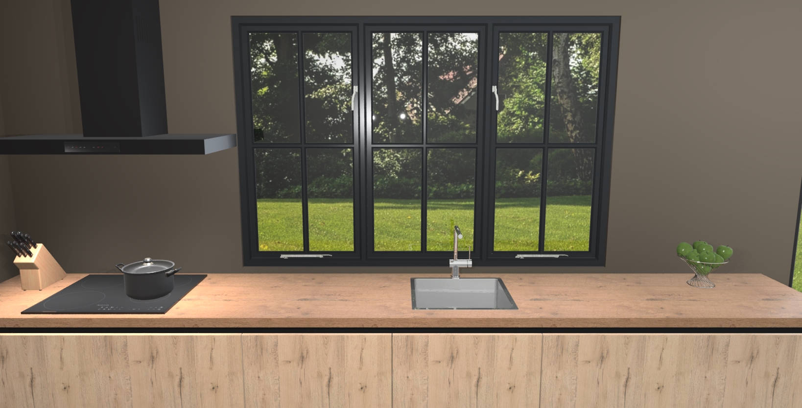 De softclose deuren openen en sluiten is ook heel eenvoudig - geniet van een moeiteloze keukenervaring, zelfs als er kinderen rondlopen. Voor extra gemak bij het plaatsen van uw bestelling bieden we ook een upgrade naar een kookplaat met geïntegreerde afzuiging.