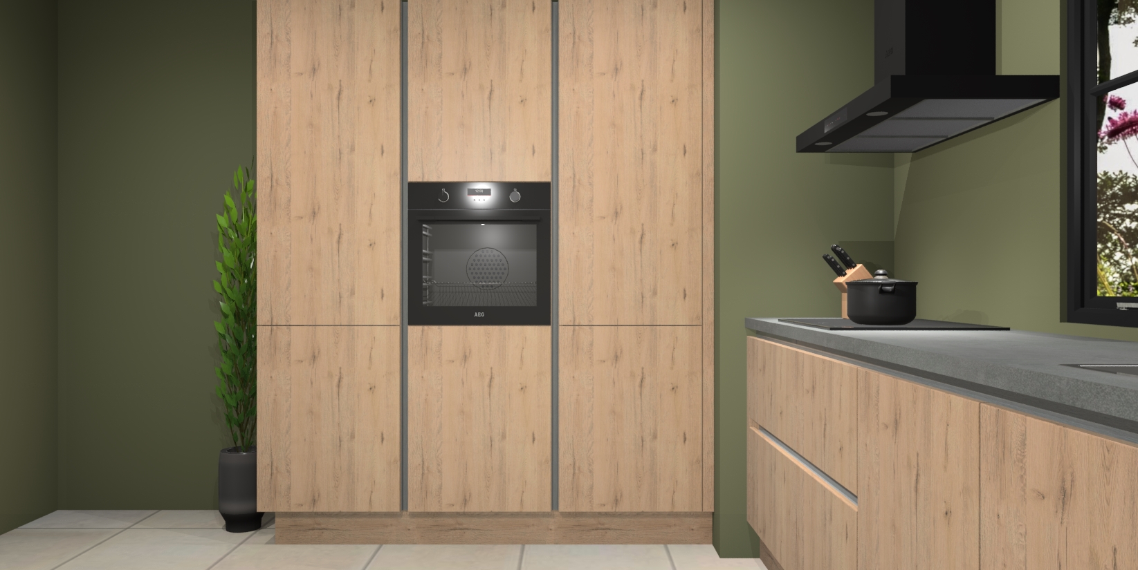De softclose deuren openen en sluiten is ook heel eenvoudig - geniet van een moeiteloze keukenervaring, zelfs als er kinderen rondlopen. Voor extra gemak bij het plaatsen van uw bestelling bieden we ook een upgrade naar een kookplaat met geïntegreerde afzuiging.