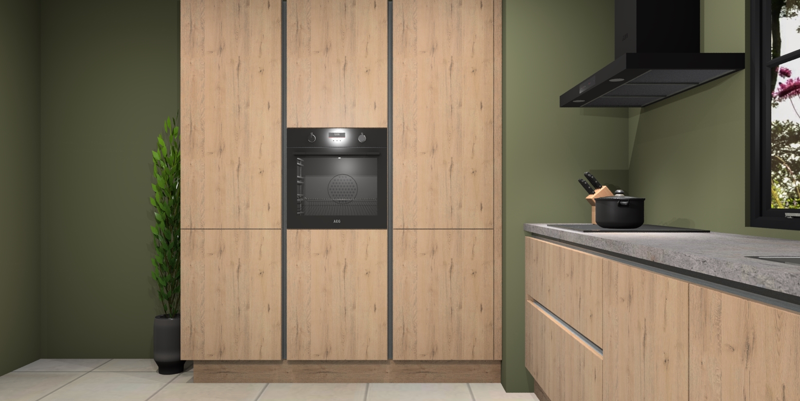 De softclose deuren openen en sluiten is ook heel eenvoudig - geniet van een moeiteloze keukenervaring, zelfs als er kinderen rondlopen. Voor extra gemak bij het plaatsen van uw bestelling bieden we ook een upgrade naar een kookplaat met geïntegreerde afzuiging.