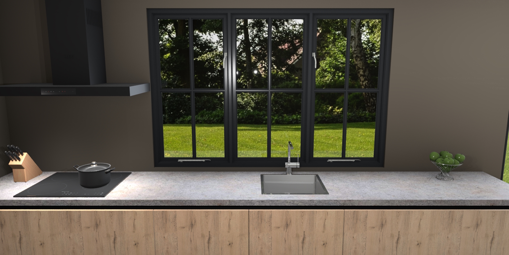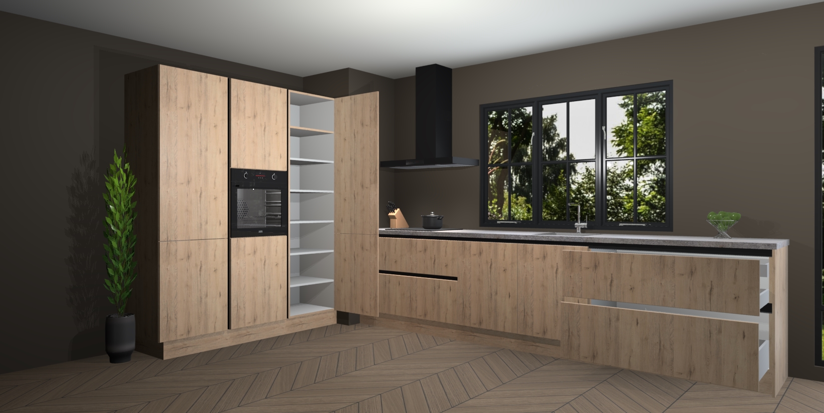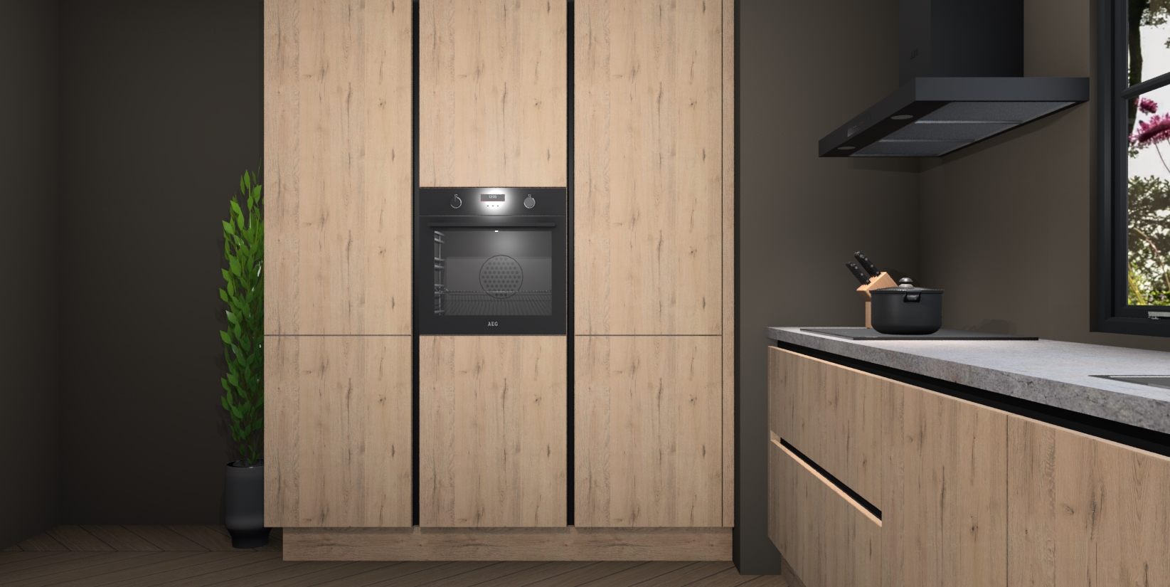 De softclose deuren openen en sluiten is ook heel eenvoudig - geniet van een moeiteloze keukenervaring, zelfs als er kinderen rondlopen. Voor extra gemak bij het plaatsen van uw bestelling bieden we ook een upgrade naar een kookplaat met geïntegreerde afzuiging.