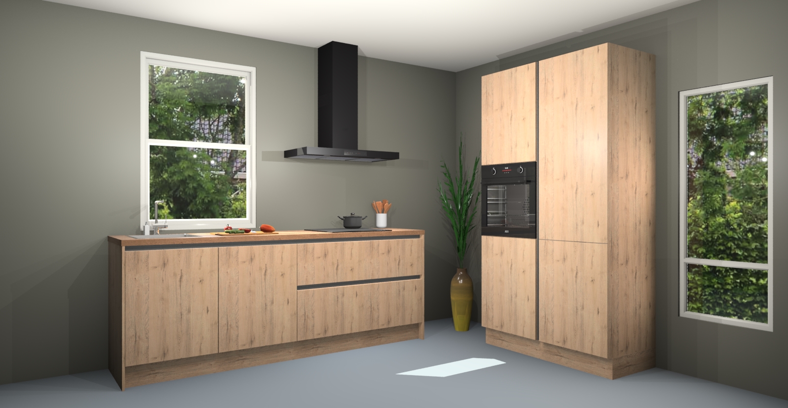 Ervaar het ultieme gevoel van warmte en gezelligheid in uw huis met de luxe Madera natuur greeploze keuken Monaco! Deze ongelooflijk sfeervolle houtlook straalt heerlijke warmte uit en tovert elke keuken om tot een gezellig familiecentrum. Breng uw dromen tot leven met deze unieke keuken, ontworpen voor moeiteloze luxe en functionaliteit.