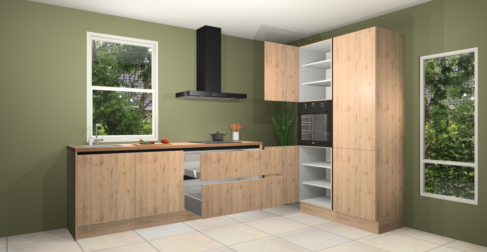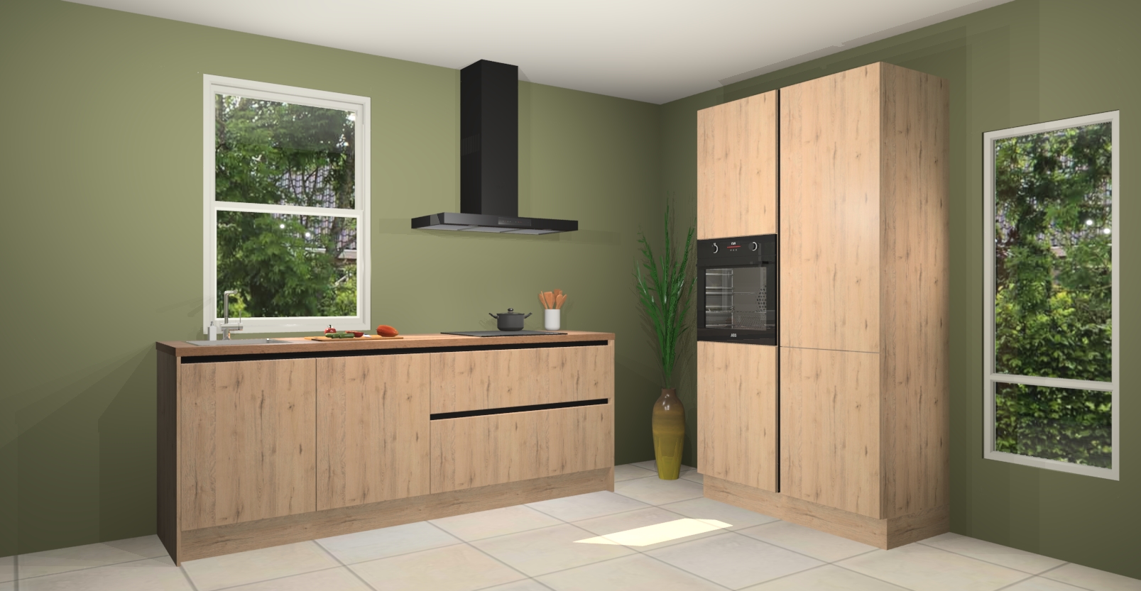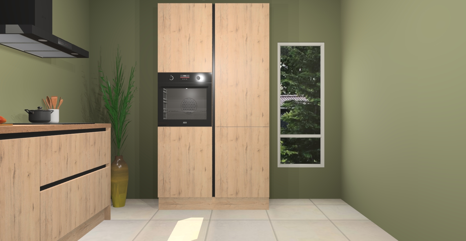 De Madera natuur greeploze keuken Monaco heeft voldoende opbergruimte om uw keukenbenodigdheden georganiseerd en netjes te houden. Geniet van het gemak van de soft-close deuren, die deze stijlvolle look perfect afmaken. Maar dat is nog niet alles. Met de Madera natuur greeploze keuken Monaco krijgt u maar liefst 5 ingebouwde apparaten: een oven, inductiekookplaat, afzuigkap, vaatwasser en koelkast. Deze kunnen gemakkelijk worden geüpgraded naar AEG als ze besteld zijn.