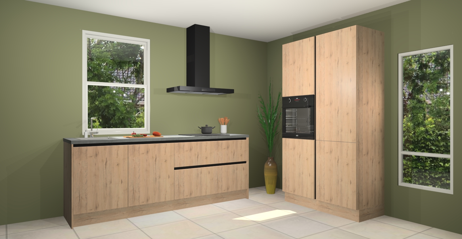 Ervaar het ultieme gevoel van warmte en gezelligheid in uw huis met de luxe Madera natuur greeploze keuken Monaco! Deze ongelooflijk sfeervolle houtlook straalt heerlijke warmte uit en tovert elke keuken om tot een gezellig familiecentrum. Breng uw dromen tot leven met deze unieke keuken, ontworpen voor moeiteloze luxe en functionaliteit.