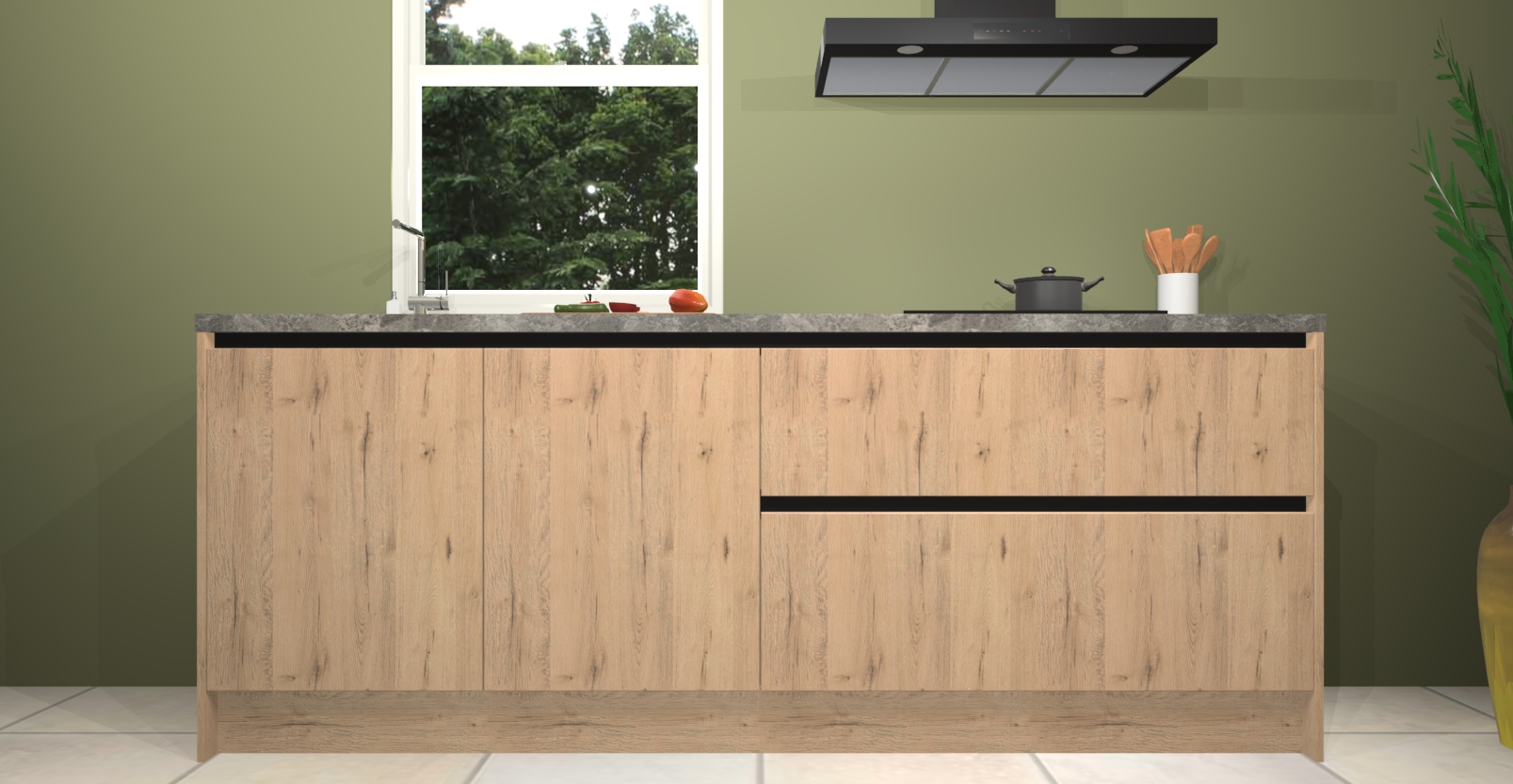 De Madera natuur greeploze keuken Monaco heeft voldoende opbergruimte om uw keukenbenodigdheden georganiseerd en netjes te houden. Geniet van het gemak van de soft-close deuren, die deze stijlvolle look perfect afmaken. Maar dat is nog niet alles. Met de Madera natuur greeploze keuken Monaco krijgt u maar liefst 5 ingebouwde apparaten: een oven, inductiekookplaat, afzuigkap, vaatwasser en koelkast. Deze kunnen gemakkelijk worden geüpgraded naar AEG als ze besteld zijn.