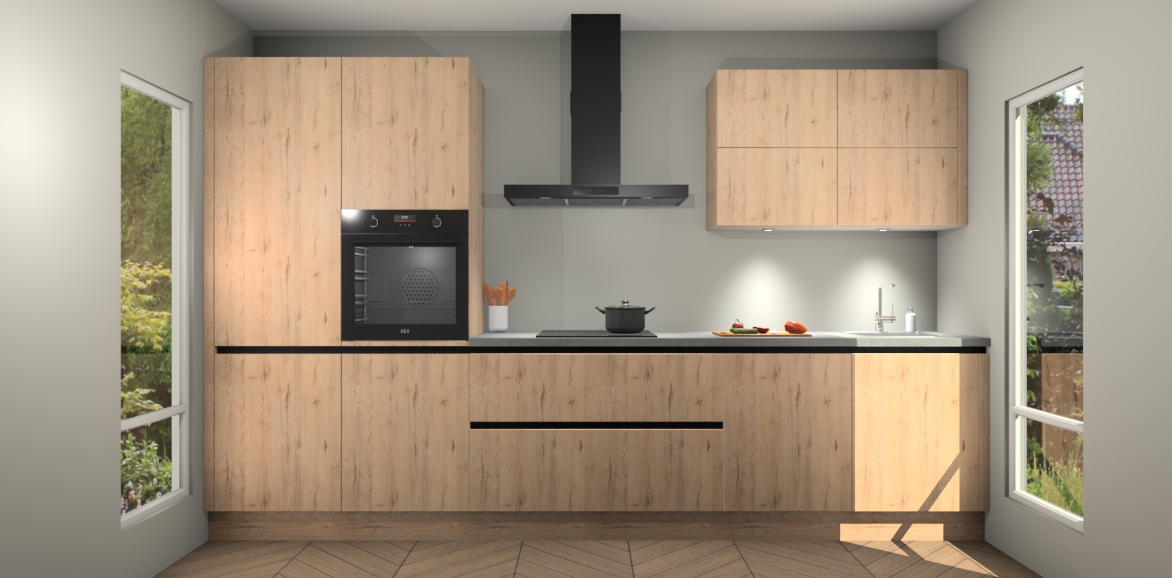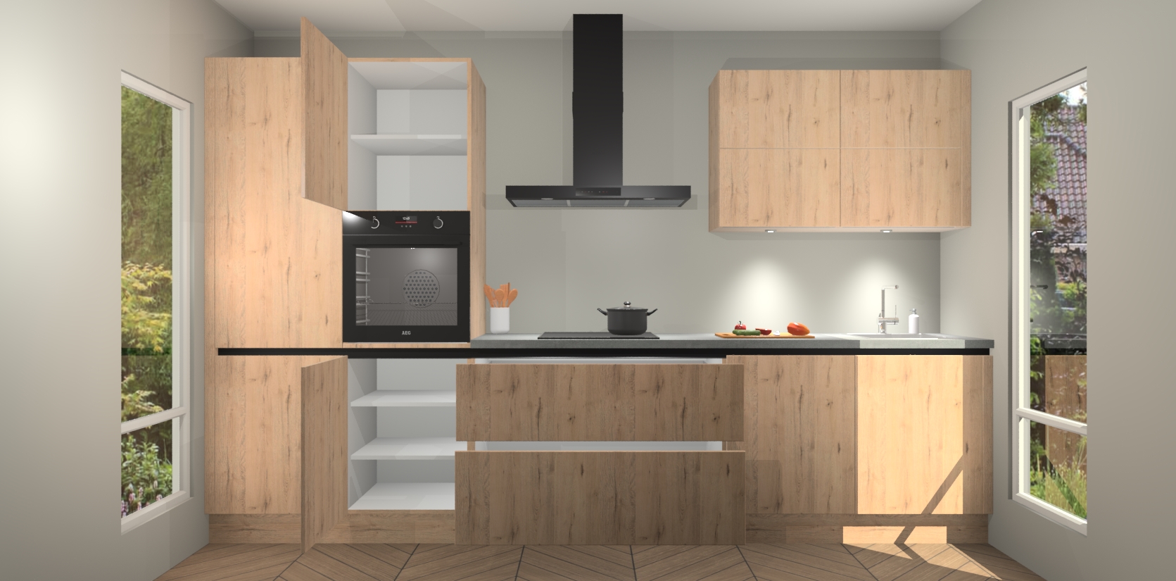 Met een levering binnen 7 weken na bestelling heeft deze keuken bovendien geen last van de ongemakkelijke lange wachttijden die bij andere keukens horen - geen vertragingen meer; gewoon snel resultaat! Krijg meteen die droomkeuken look met de Madera Natuur greeploze Keuken Parijs!