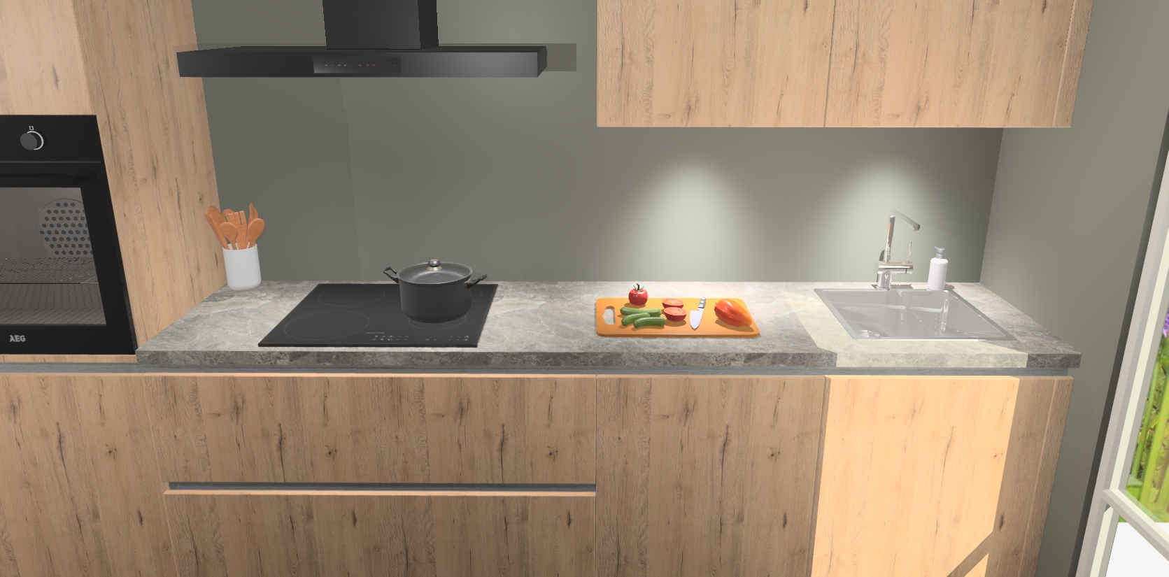 - Uitsparing van kookplaat, spoelbak en kraan dient u zelf te verzorgen.