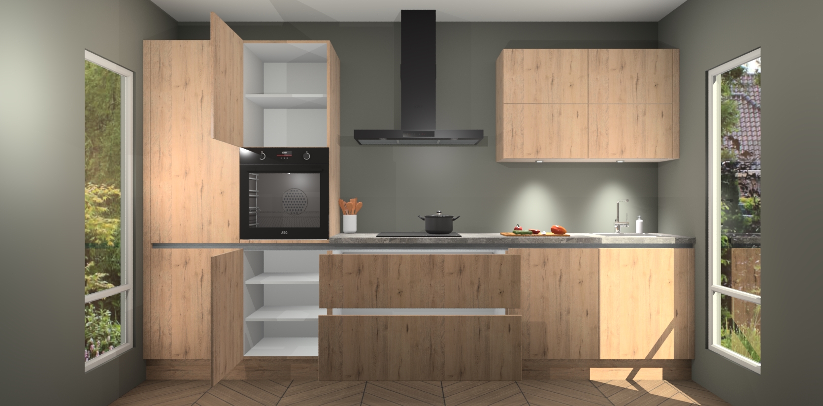 Met een levering binnen 7 weken na bestelling heeft deze keuken bovendien geen last van de ongemakkelijke lange wachttijden die bij andere keukens horen - geen vertragingen meer; gewoon snel resultaat! Krijg meteen die droomkeuken look met de Madera Natuur greeploze Keuken Parijs!
