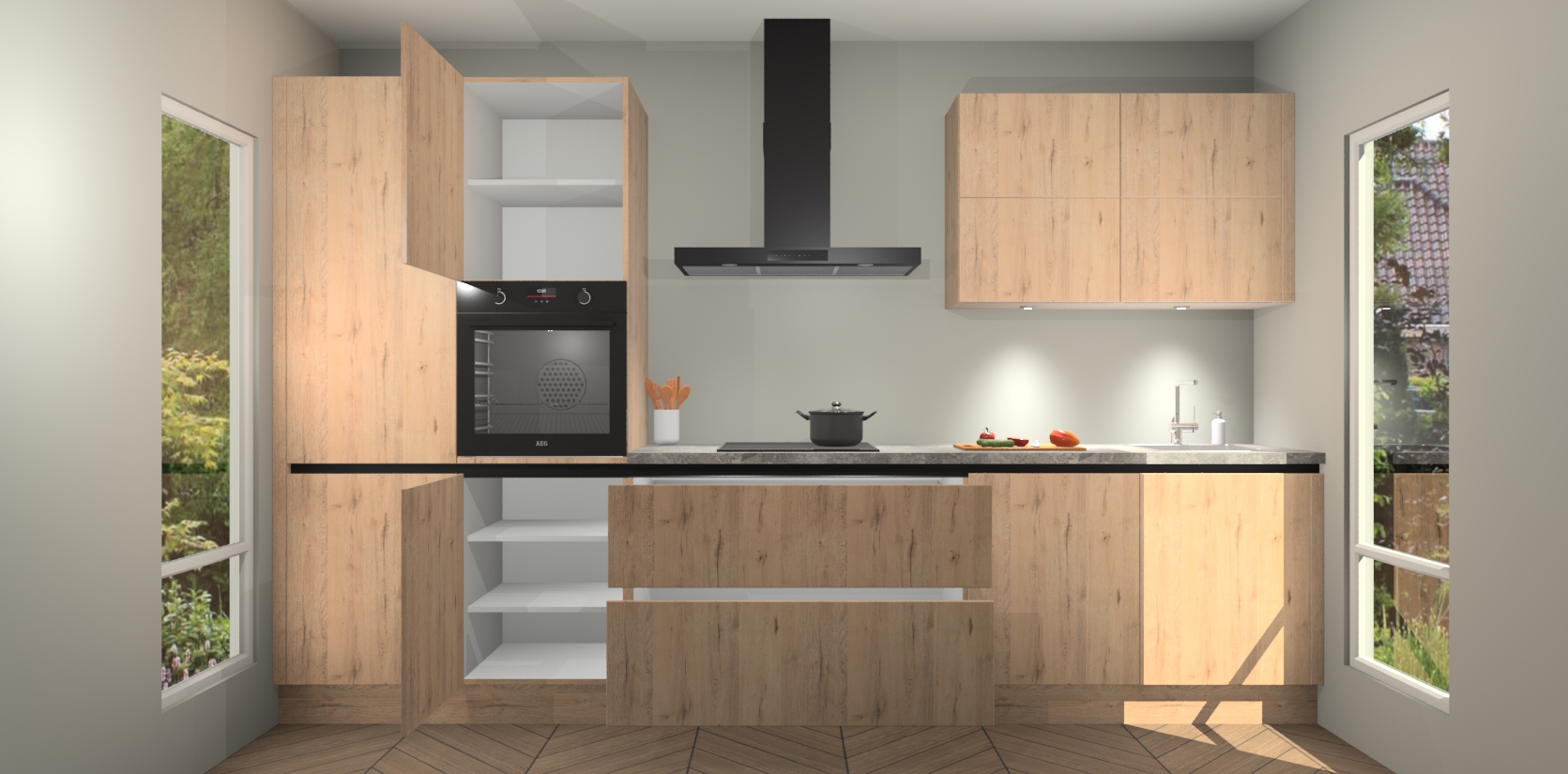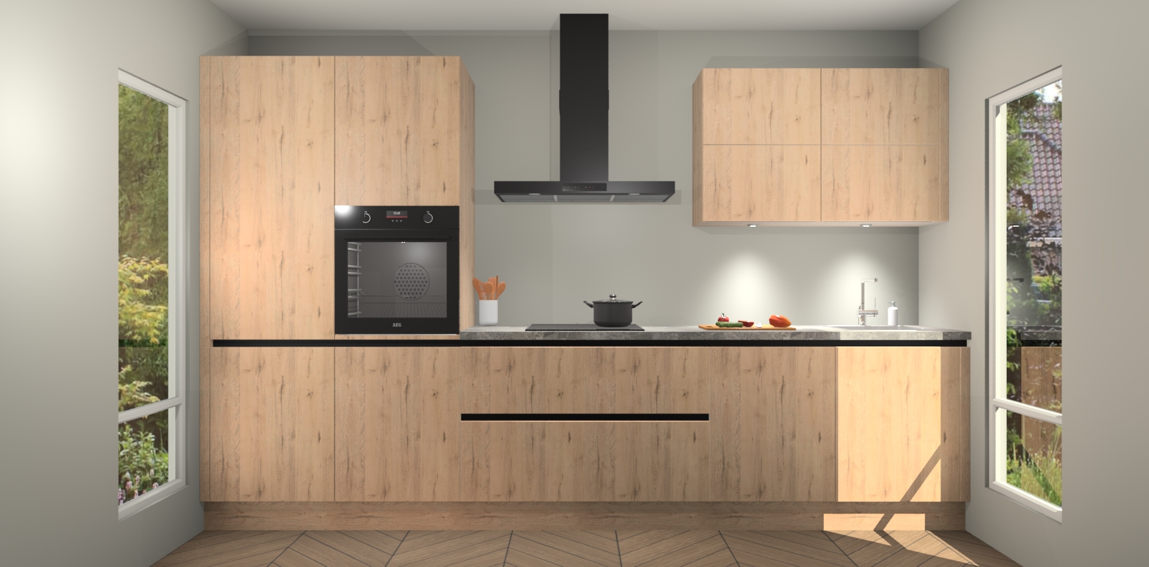 Met een levering binnen 7 weken na bestelling heeft deze keuken bovendien geen last van de ongemakkelijke lange wachttijden die bij andere keukens horen - geen vertragingen meer; gewoon snel resultaat! Krijg meteen die droomkeuken look met de Madera Natuur greeploze Keuken Parijs!