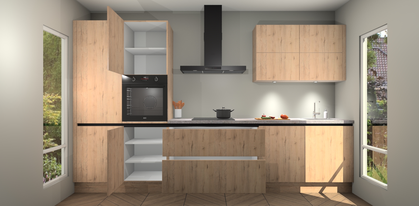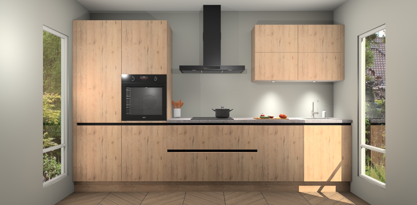 Met een levering binnen 7 weken na bestelling heeft deze keuken bovendien geen last van de ongemakkelijke lange wachttijden die bij andere keukens horen - geen vertragingen meer; gewoon snel resultaat! Krijg meteen die droomkeuken look met de Madera Natuur greeploze Keuken Parijs!