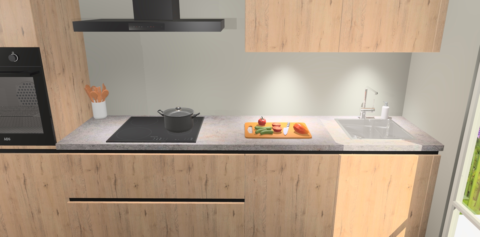 - Uitsparing van kookplaat, spoelbak en kraan dient u zelf te verzorgen.