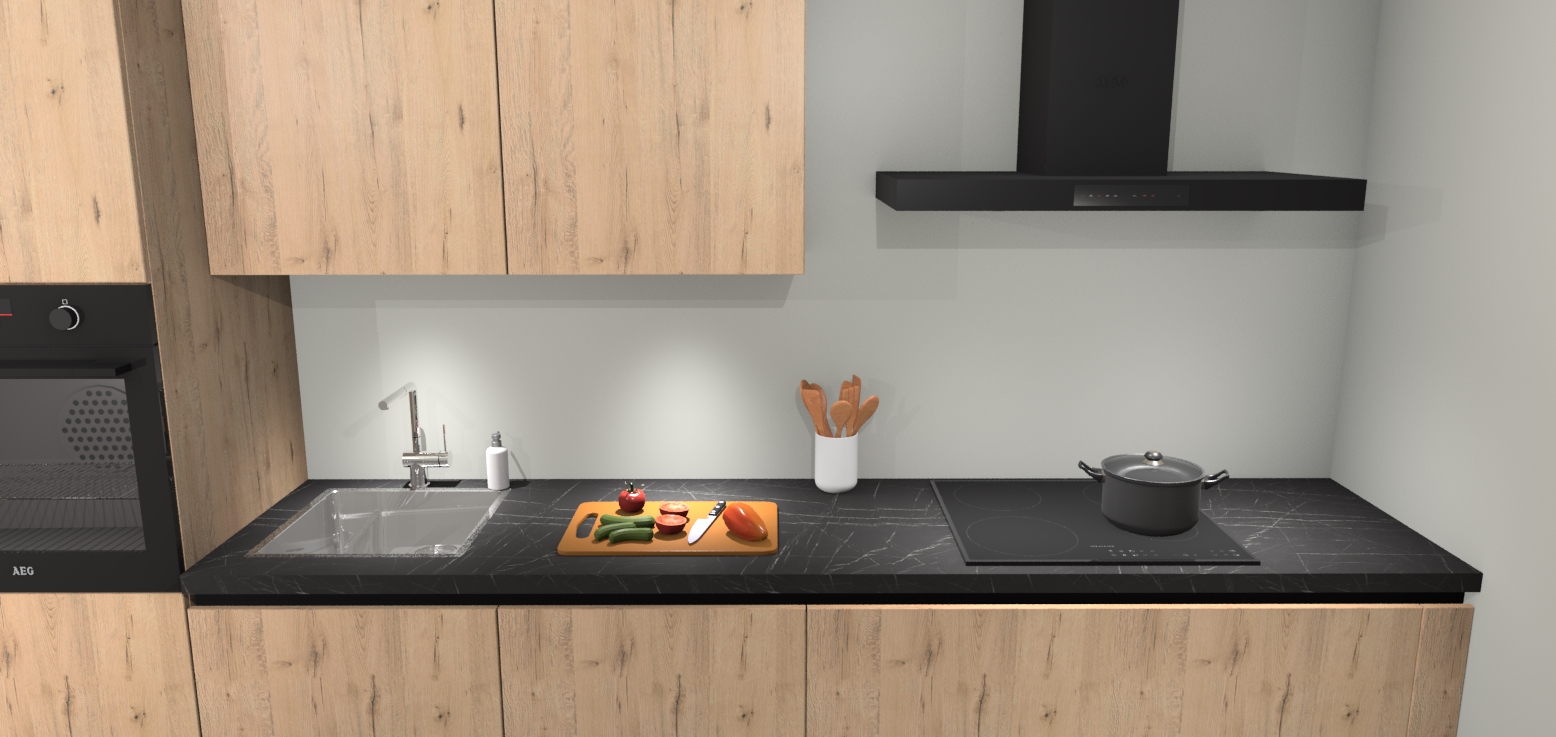 - Uitsparing van kookplaat, spoelbak en kraan dient u zelf te verzorgen.