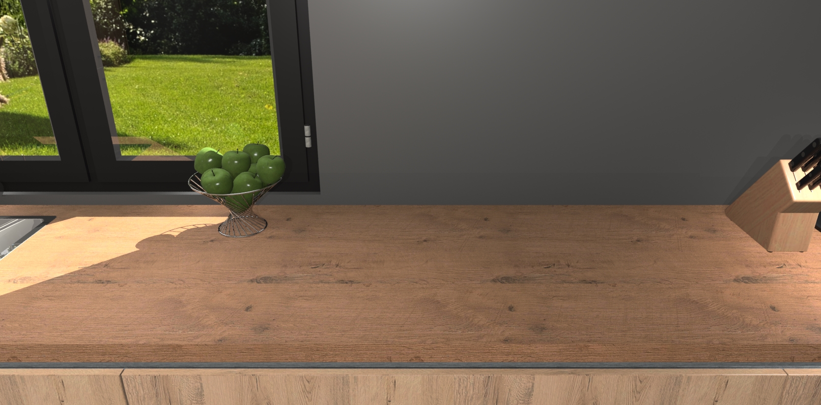 - Bij een hoekwerkblad zijn de hoeken in gevreesd en op maat gemaakt