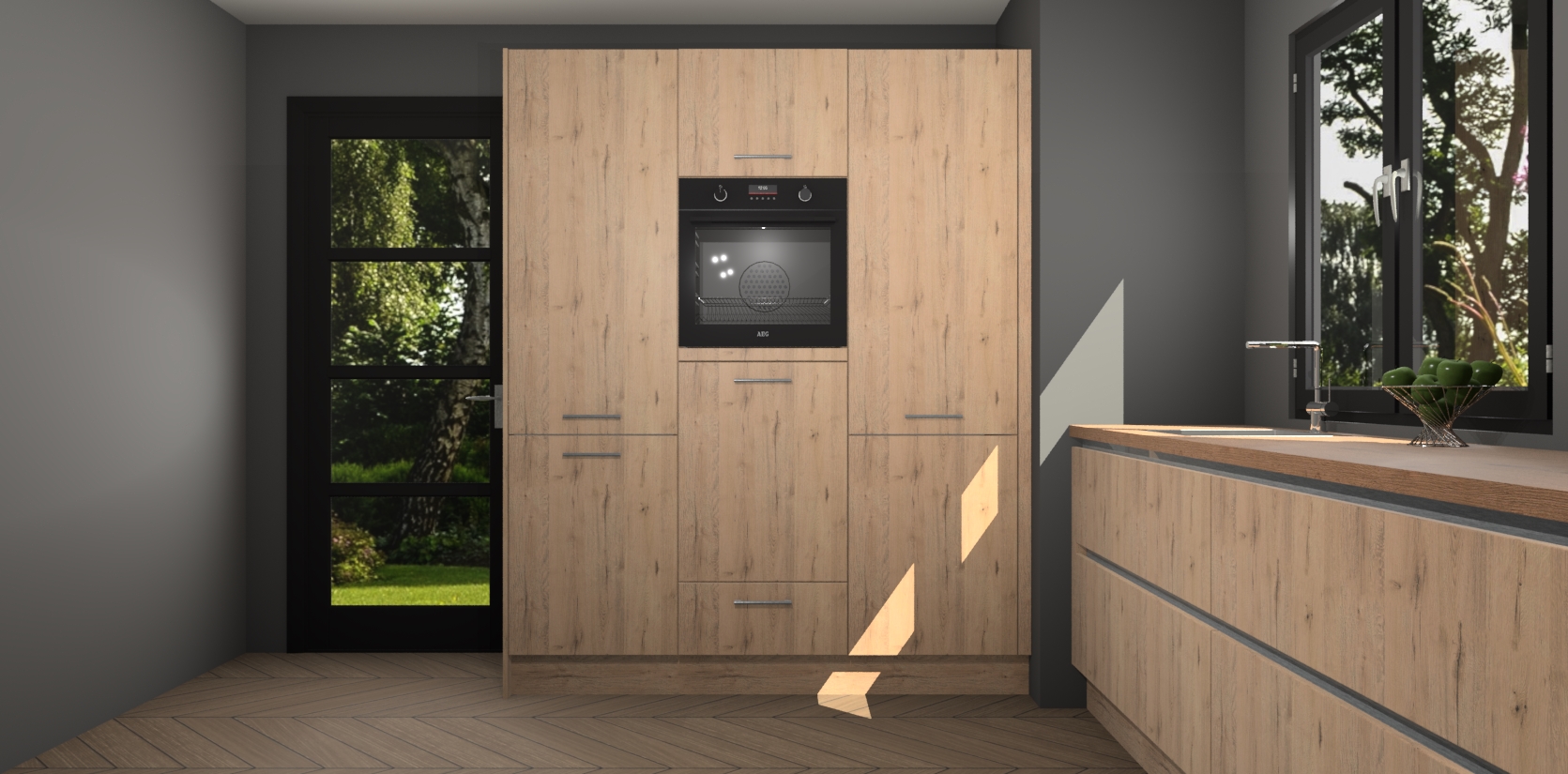 De softclose deuren openen en sluiten is ook heel eenvoudig - geniet van een moeiteloze keukenervaring, zelfs als er kinderen rondlopen. Voor extra gemak bij het plaatsen van uw bestelling bieden we ook een upgrade naar een kookplaat met geïntegreerde afzuiging.