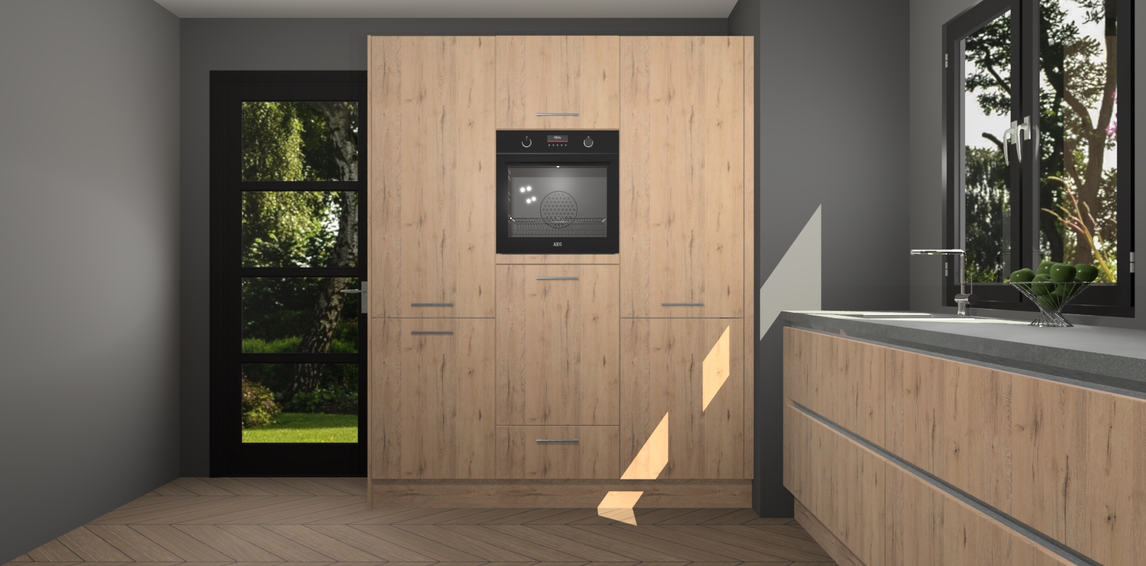 De softclose deuren openen en sluiten is ook heel eenvoudig - geniet van een moeiteloze keukenervaring, zelfs als er kinderen rondlopen. Voor extra gemak bij het plaatsen van uw bestelling bieden we ook een upgrade naar een kookplaat met geïntegreerde afzuiging.
