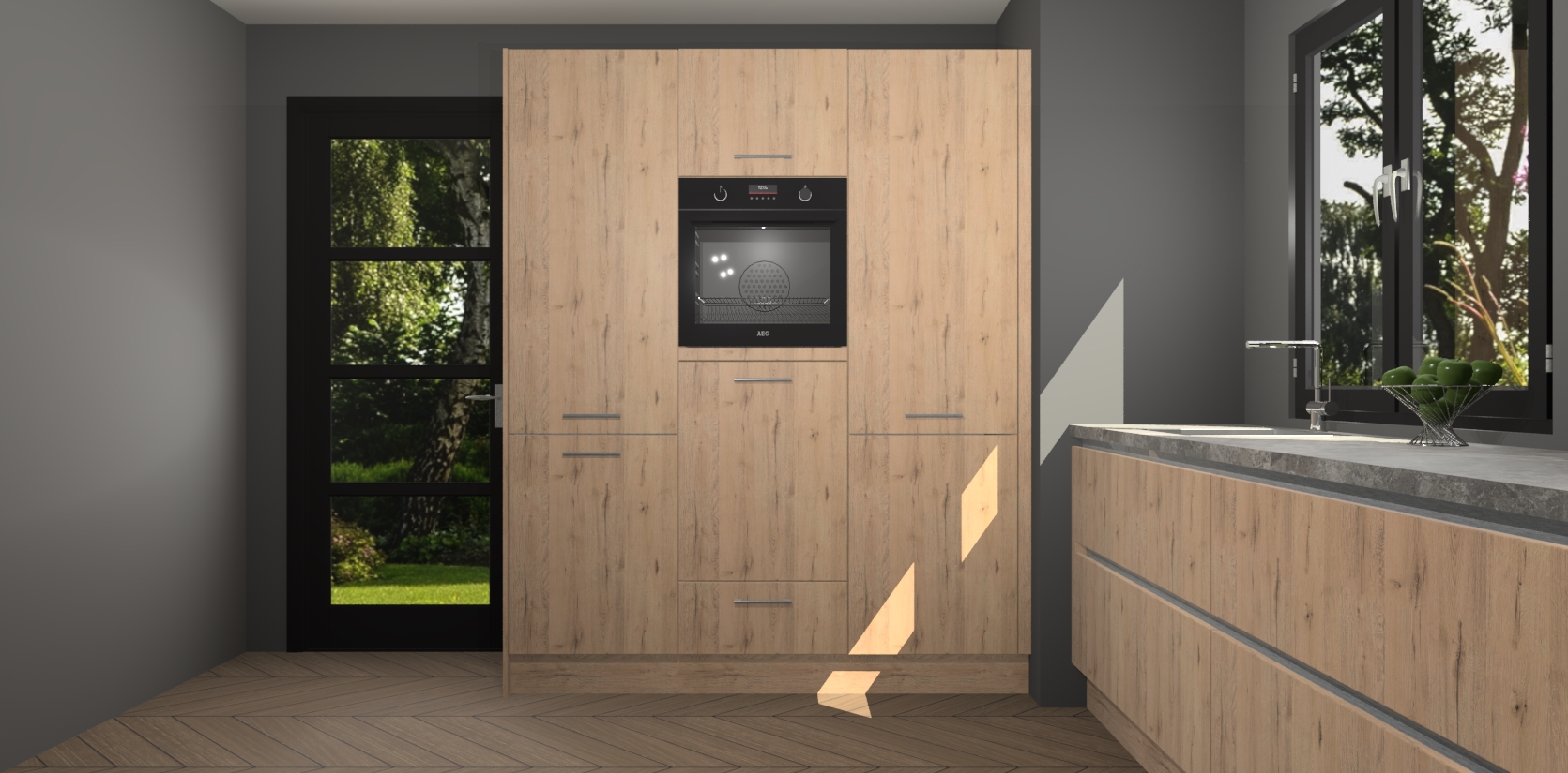 De softclose deuren openen en sluiten is ook heel eenvoudig - geniet van een moeiteloze keukenervaring, zelfs als er kinderen rondlopen. Voor extra gemak bij het plaatsen van uw bestelling bieden we ook een upgrade naar een kookplaat met geïntegreerde afzuiging.