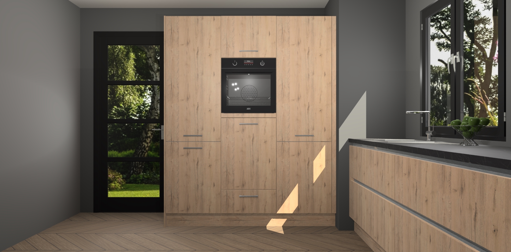 De softclose deuren openen en sluiten is ook heel eenvoudig - geniet van een moeiteloze keukenervaring, zelfs als er kinderen rondlopen. Voor extra gemak bij het plaatsen van uw bestelling bieden we ook een upgrade naar een kookplaat met geïntegreerde afzuiging.