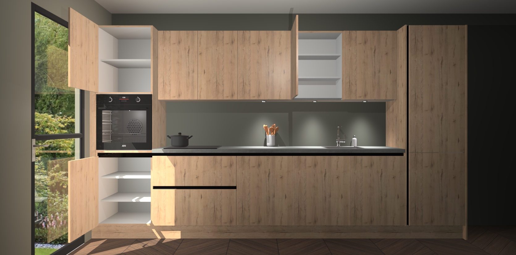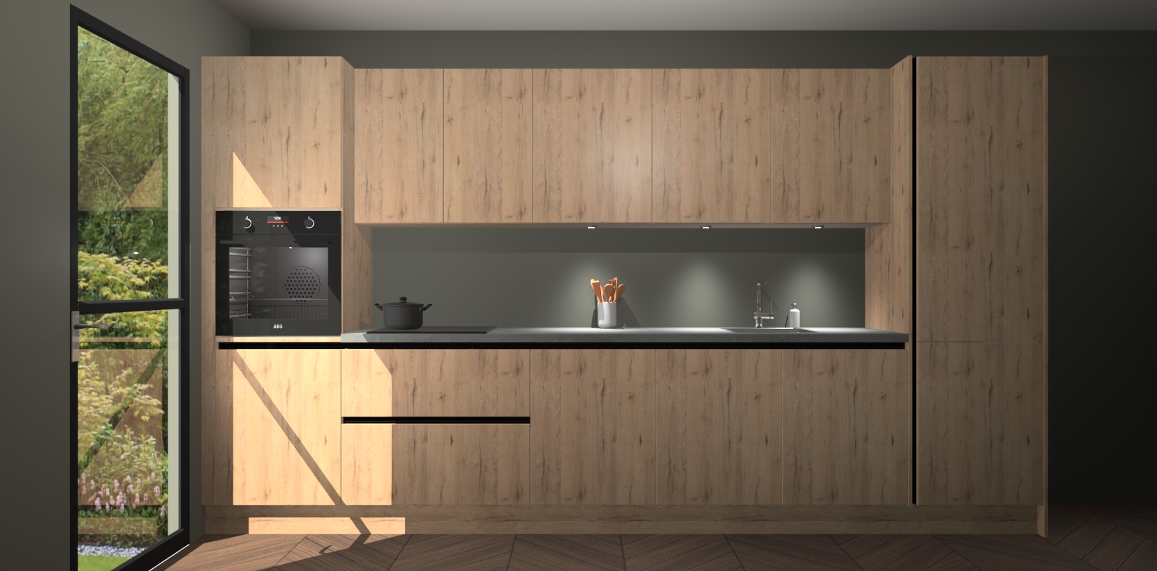 Dit is de perfecte keuken voor wie op zoek is naar een luxueuze stijl zonder zijn portemonnee te legen! Het chique ontwerp van de madera natuur greeploze keuken Wels voegt dat vleugje verfijning toe aan elk huis. Het gemak van voorgemonteerde kasten bespaart u talloze uren tijd en energie, zodat u veel sneller dan verwacht kunt beginnen te genieten van uw prachtige nieuwe keuken. Bovendien bedraagt de levertijd slechts 7 weken.