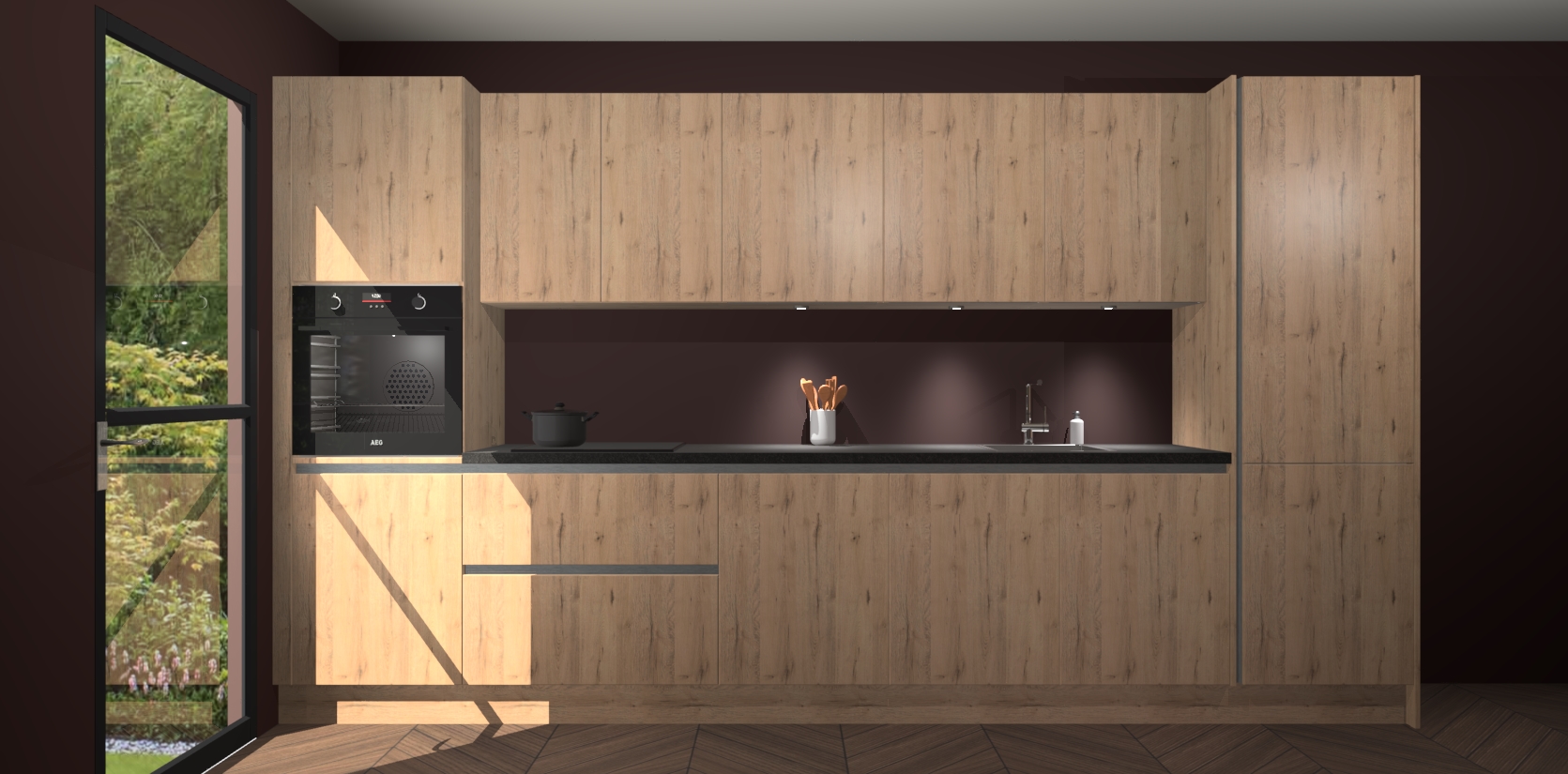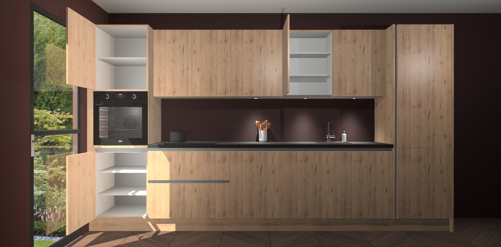 Dit is de perfecte keuken voor wie op zoek is naar een luxueuze stijl zonder zijn portemonnee te legen! Het chique ontwerp van de madera natuur greeploze keuken Wels voegt dat vleugje verfijning toe aan elk huis. Het gemak van voorgemonteerde kasten bespaart u talloze uren tijd en energie, zodat u veel sneller dan verwacht kunt beginnen te genieten van uw prachtige nieuwe keuken. Bovendien bedraagt de levertijd slechts 7 weken.