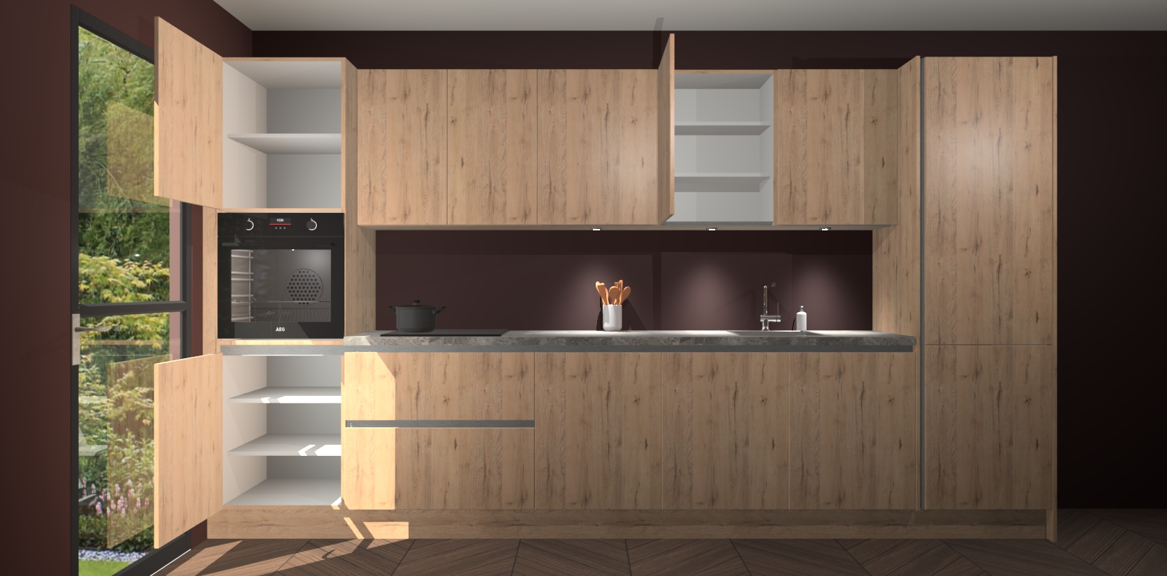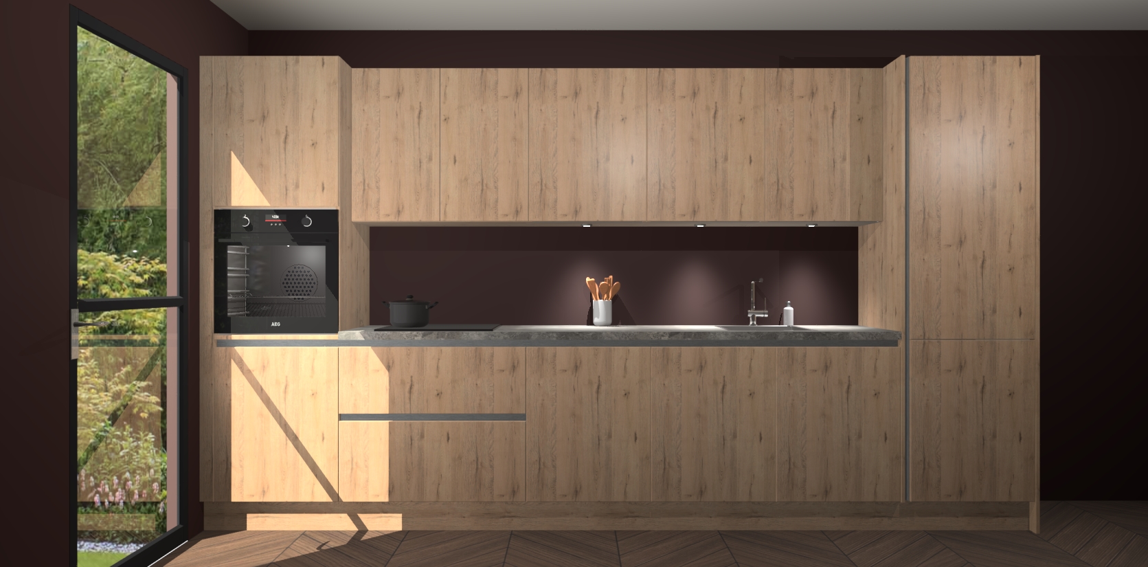 Dit is de perfecte keuken voor wie op zoek is naar een luxueuze stijl zonder zijn portemonnee te legen! Het chique ontwerp van de madera natuur greeploze keuken Wels voegt dat vleugje verfijning toe aan elk huis. Het gemak van voorgemonteerde kasten bespaart u talloze uren tijd en energie, zodat u veel sneller dan verwacht kunt beginnen te genieten van uw prachtige nieuwe keuken. Bovendien bedraagt de levertijd slechts 7 weken.