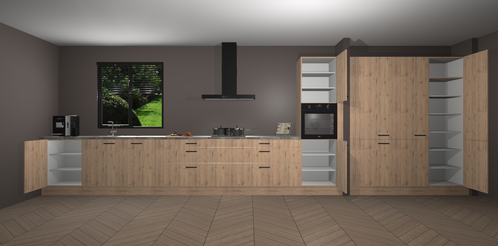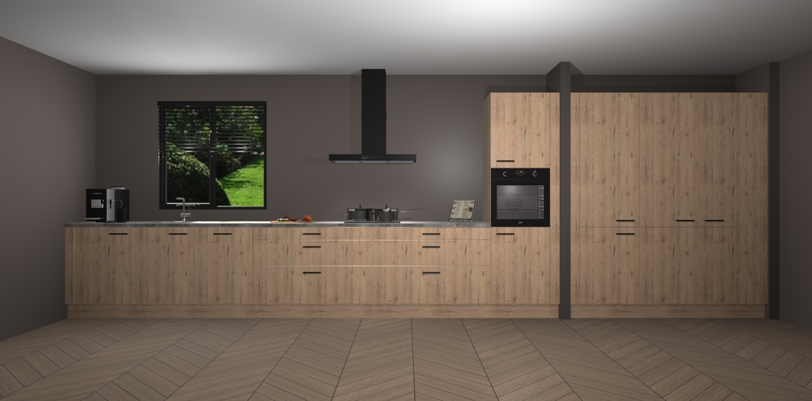 Een stijlvolle en praktische keuken als deze mag gezien worden. Dankzij de prachtige matte afwerking wordt de keuken gemakkelijk het middelpunt van uw huis - hij ziet er geweldig uit onder allerlei lichtomstandigheden, van dag tot nacht!