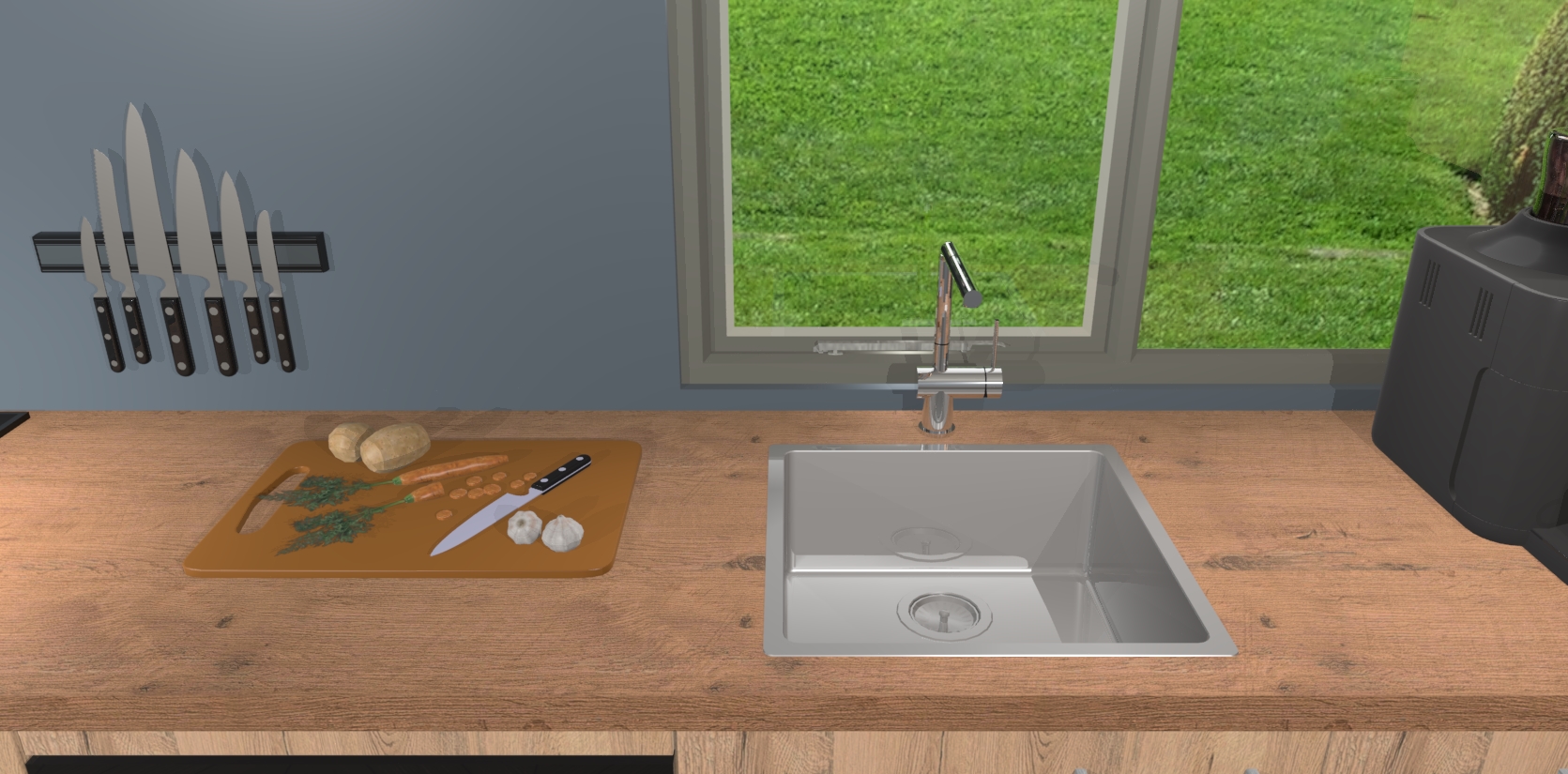 - De spoelbak is nog niet in gevreesd. Dit dient tijdens het werk gedaan te worden