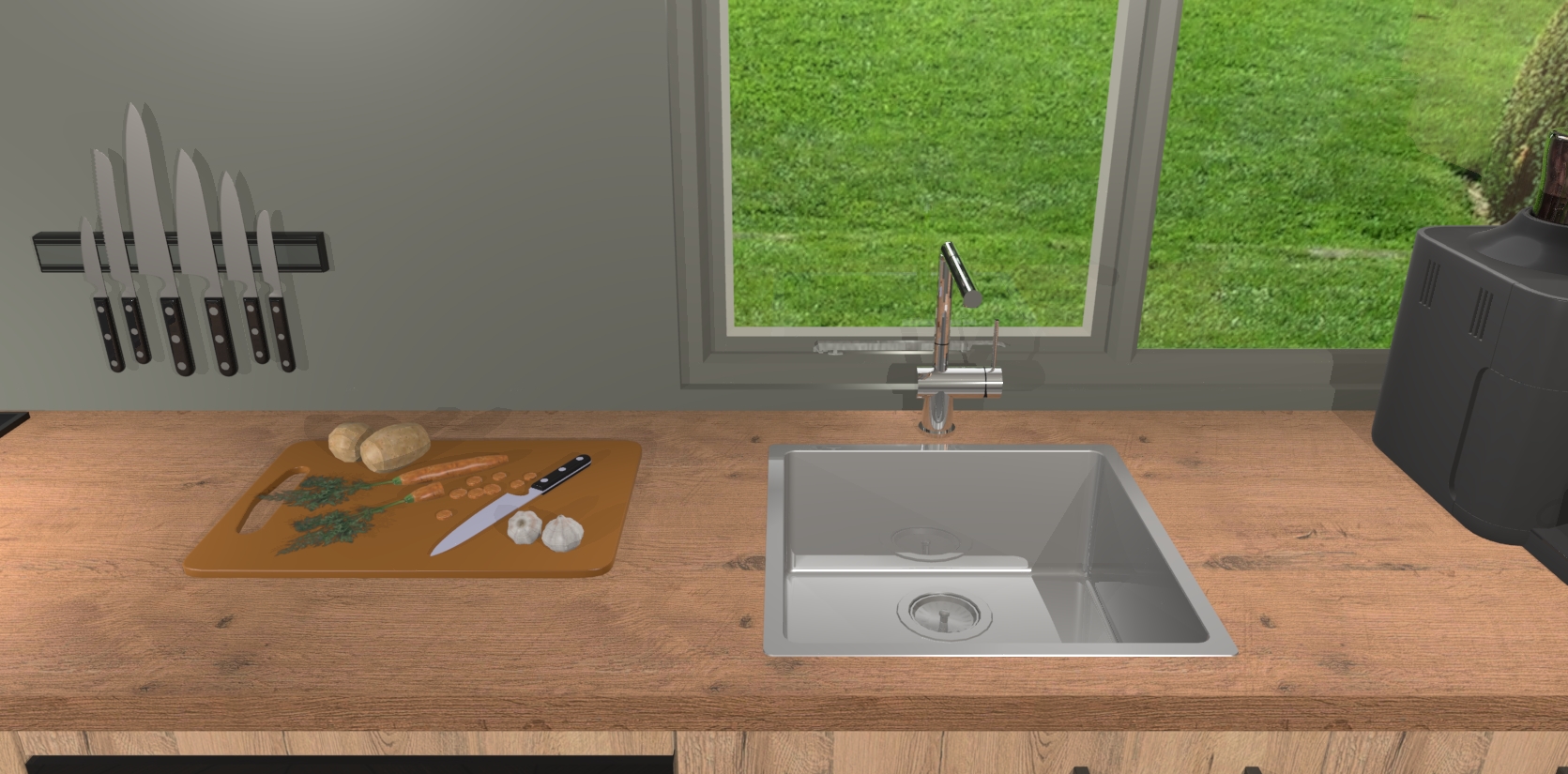 - De spoelbak is nog niet in gevreesd. Dit dient tijdens het werk gedaan te worden
