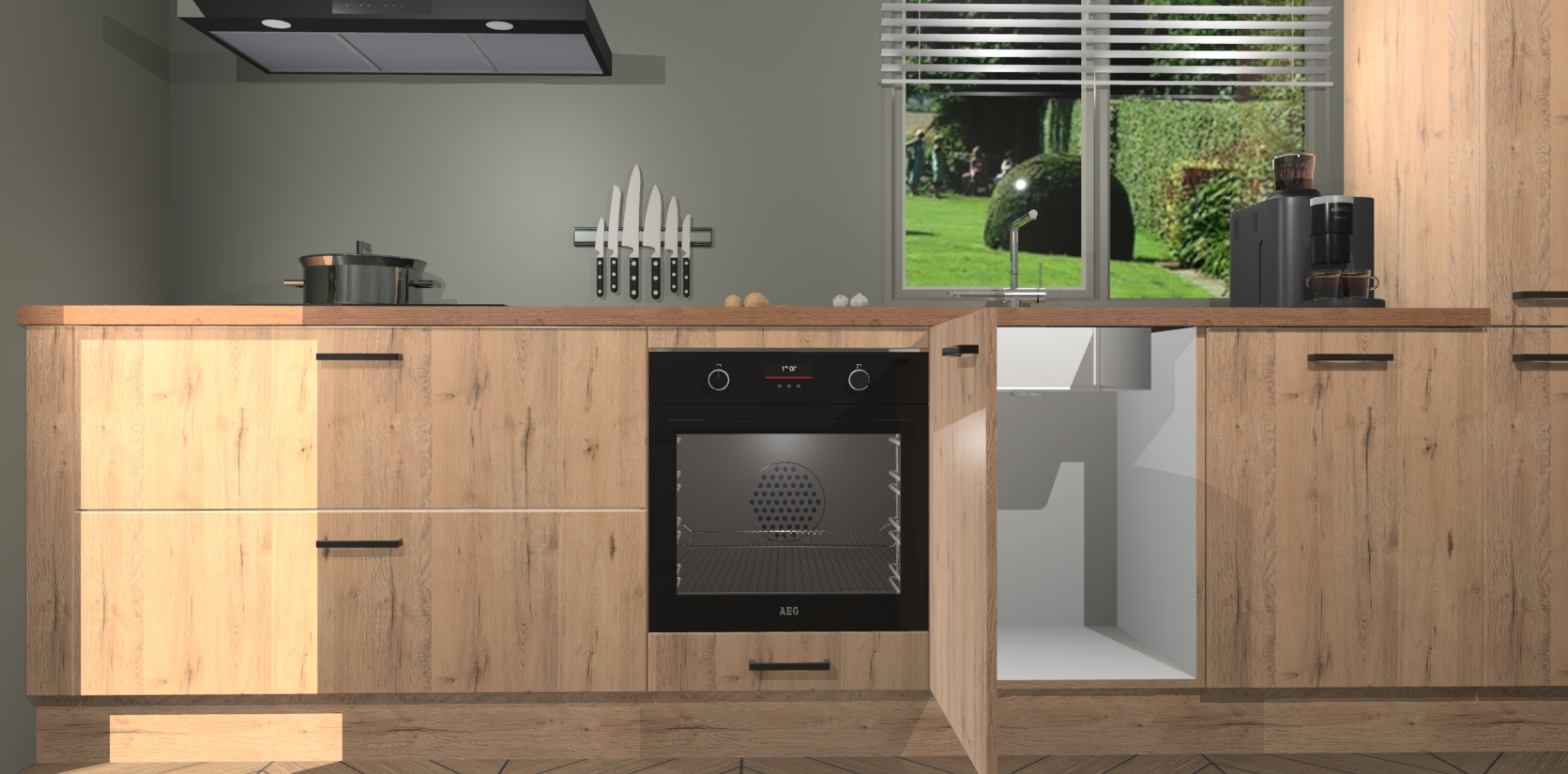- Ombouw om de oven onder het werkblad te kunnen monteren