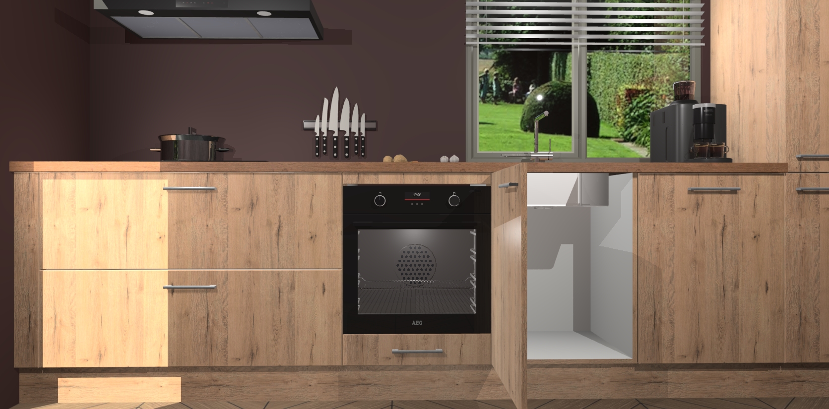 - Ombouw om de oven onder het werkblad te kunnen monteren