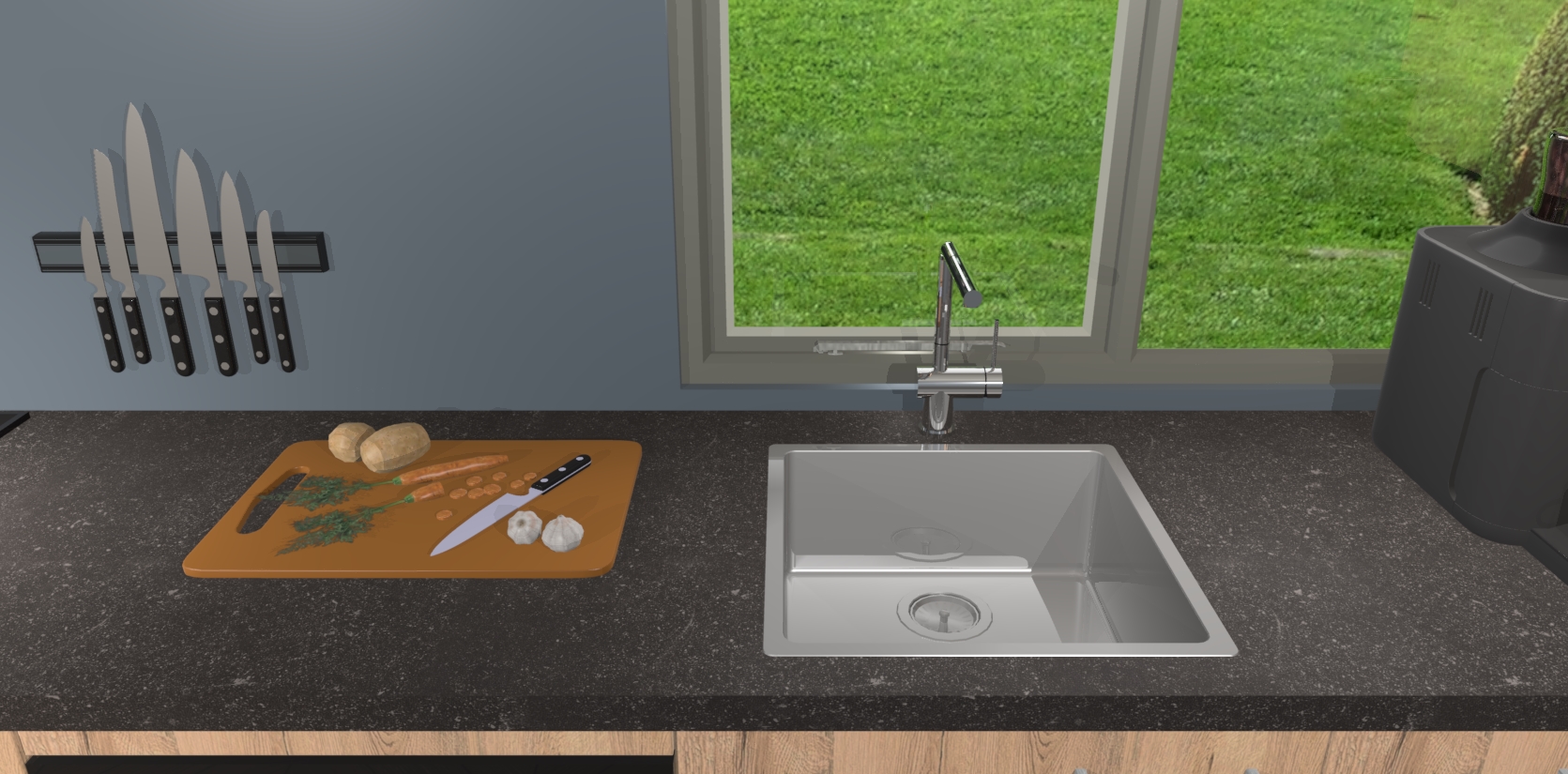 - De spoelbak is nog niet in gevreesd. Dit dient tijdens het werk gedaan te worden