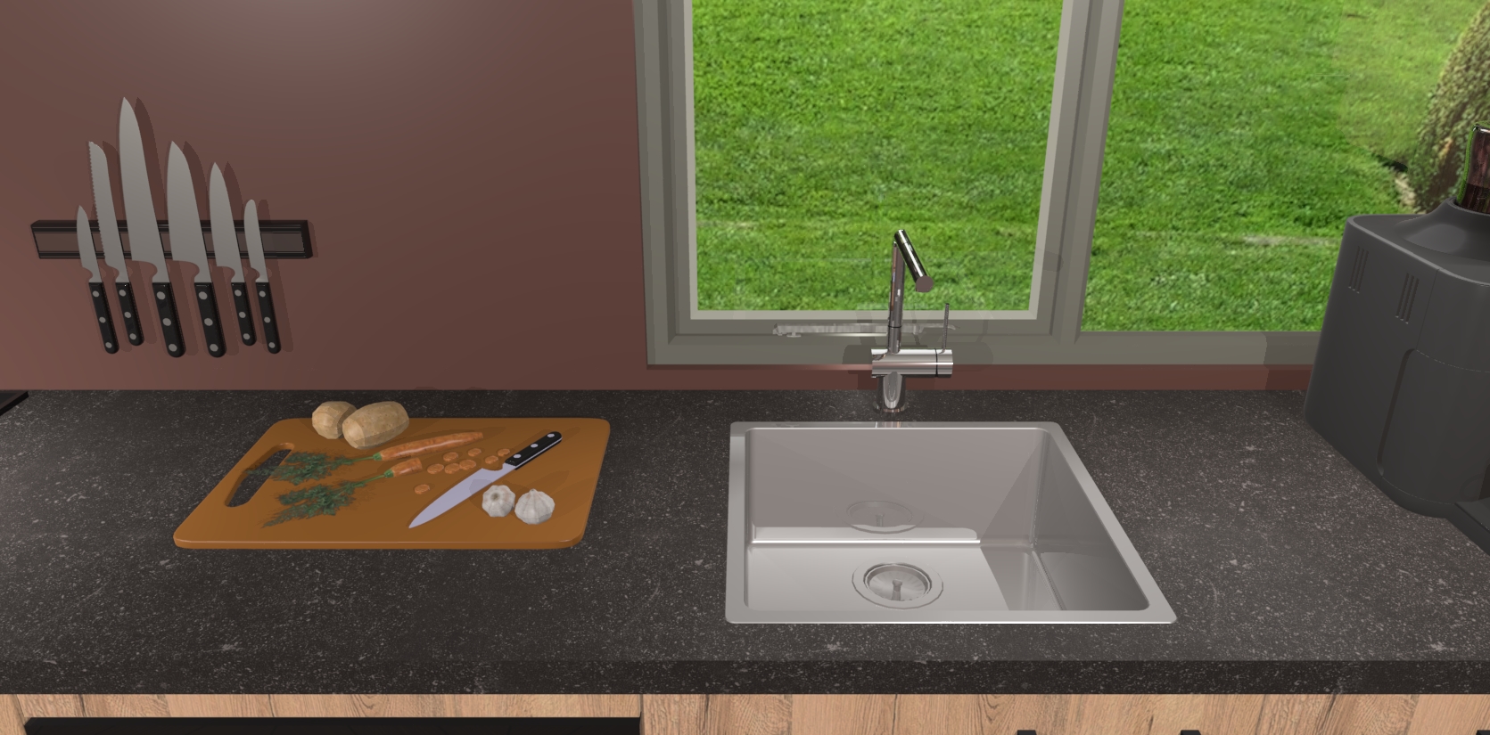 - De spoelbak is nog niet in gevreesd. Dit dient tijdens het werk gedaan te worden