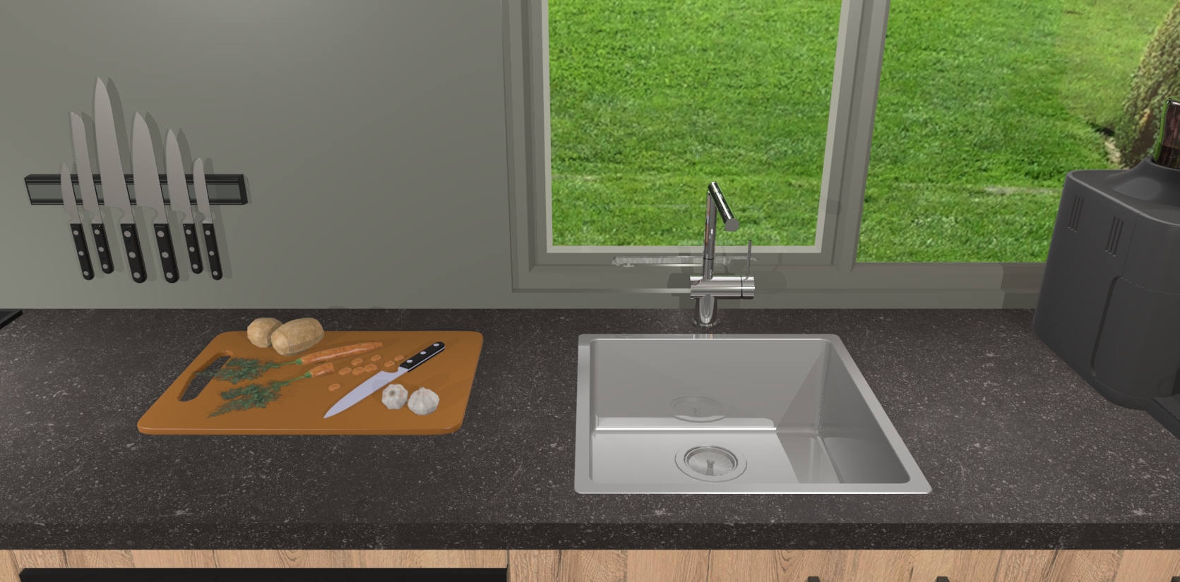 - De spoelbak is nog niet in gevreesd. Dit dient tijdens het werk gedaan te worden