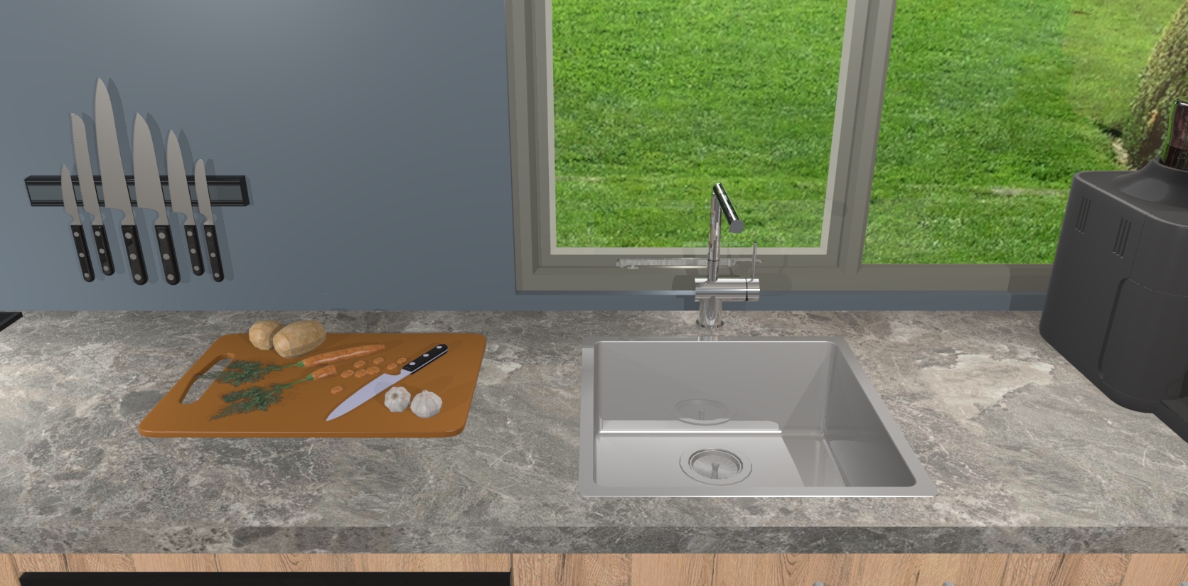 • De spoelbak is nog niet in gevreesd. Dit dient tijdens het werk gedaan te worden
