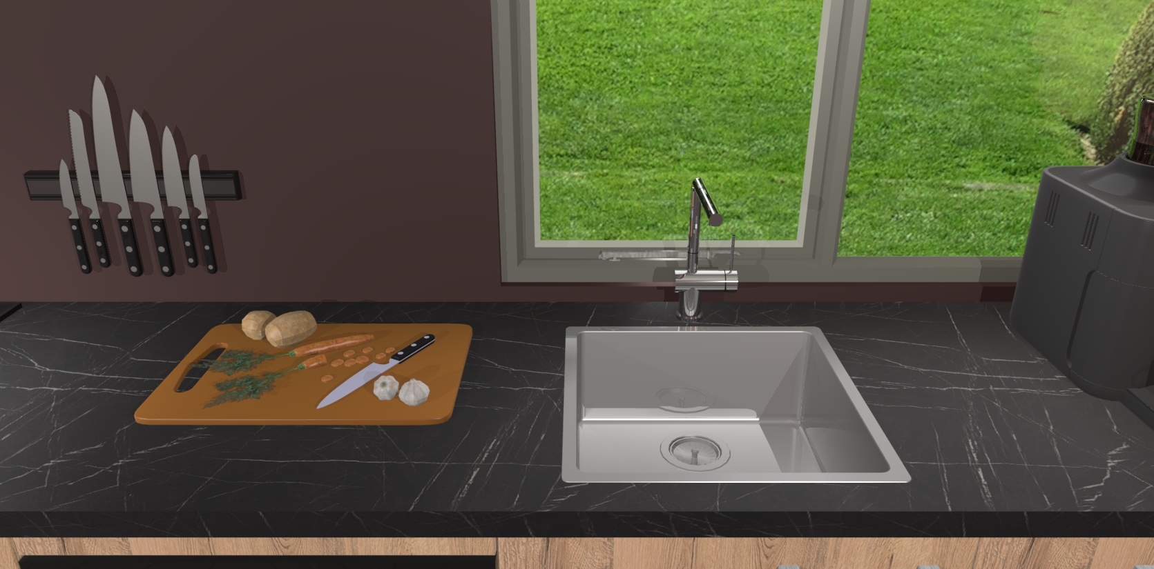 - De spoelbak is nog niet in gevreesd. Dit dient tijdens het werk gedaan te worden