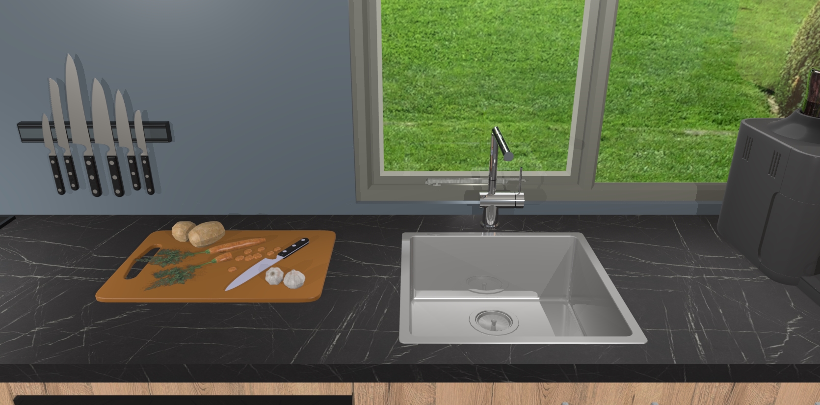 - De spoelbak is nog niet in gevreesd. Dit dient tijdens het werk gedaan te worden