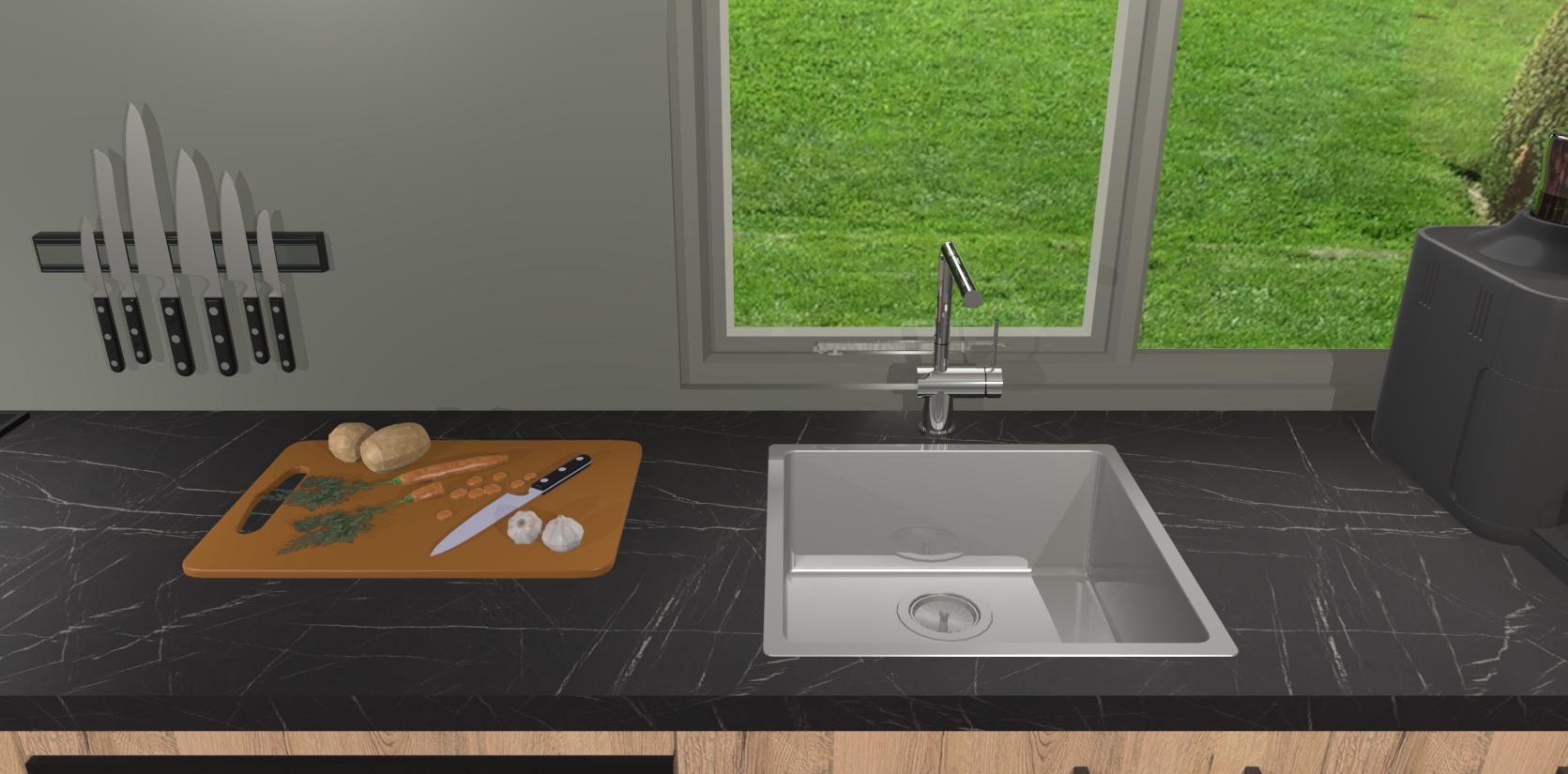 - De spoelbak is nog niet in gevreesd. Dit dient tijdens het werk gedaan te worden