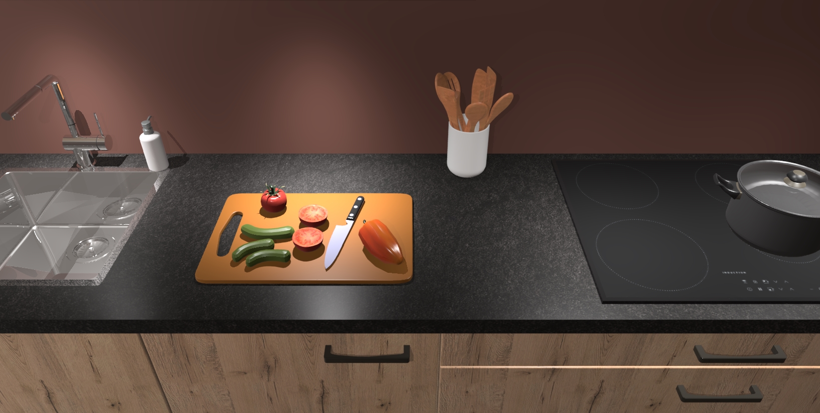 - Uitsparing van kookplaat, spoelbak en kraan dient u zelf te verzorgen.