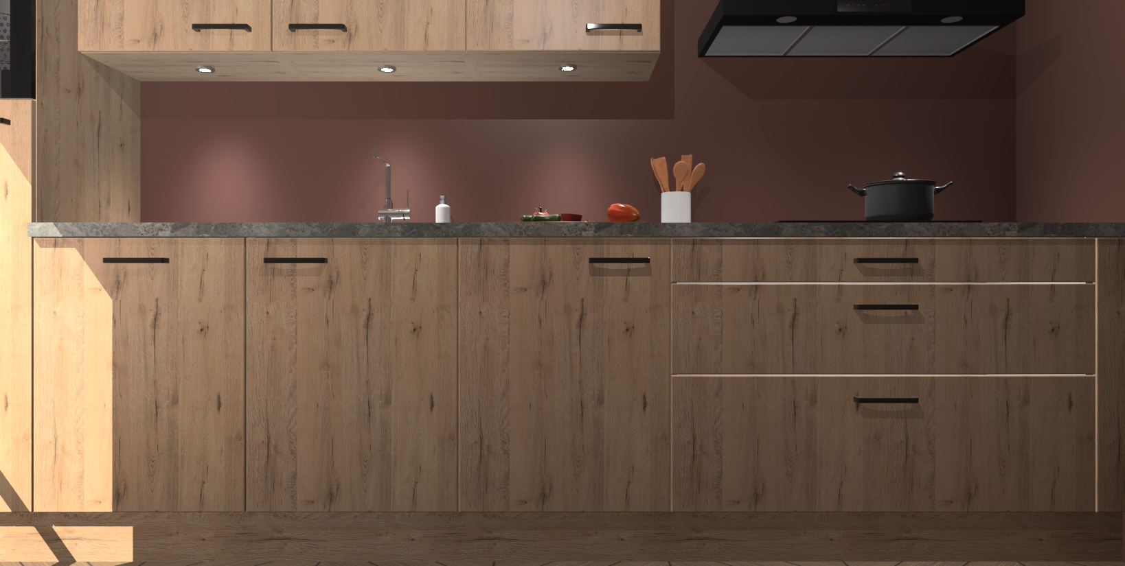 Inclusief plinten, stelpoten en werkblad