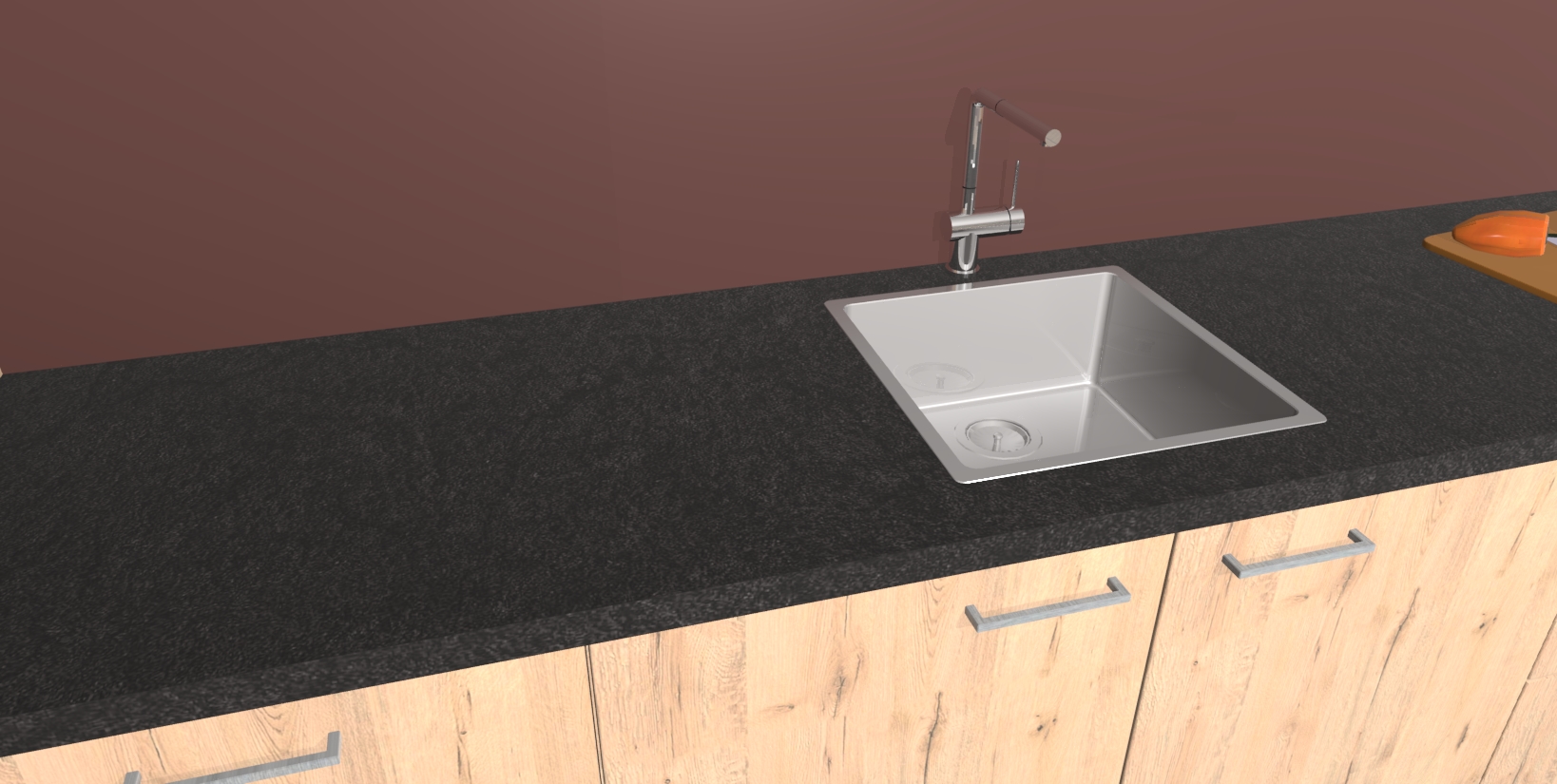 - De spoelbak is nog niet in gevreesd. Dit dient tijdens het werk gedaan te worden