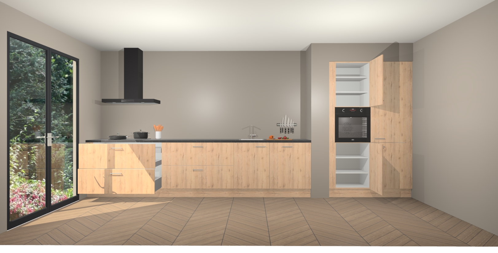 Met de Madera Natuur keuken Calgary Maakt u van uw keuken het pronkstuk van uw huis. Stijlvol en toch praktisch, de nieuwste look voor wie meer waarde en charme aan zijn huis wil toevoegen. Met prachtige handgrepen die zich lenen voor een klassieke stijlbron, zal u niet teleurgesteld zijn in het resultaat. De soft-close deurscharnieren geven een gevoel van luxe omdat ze zachtjes bewegen zonder storende of krakende geluiden te veroorzaken.