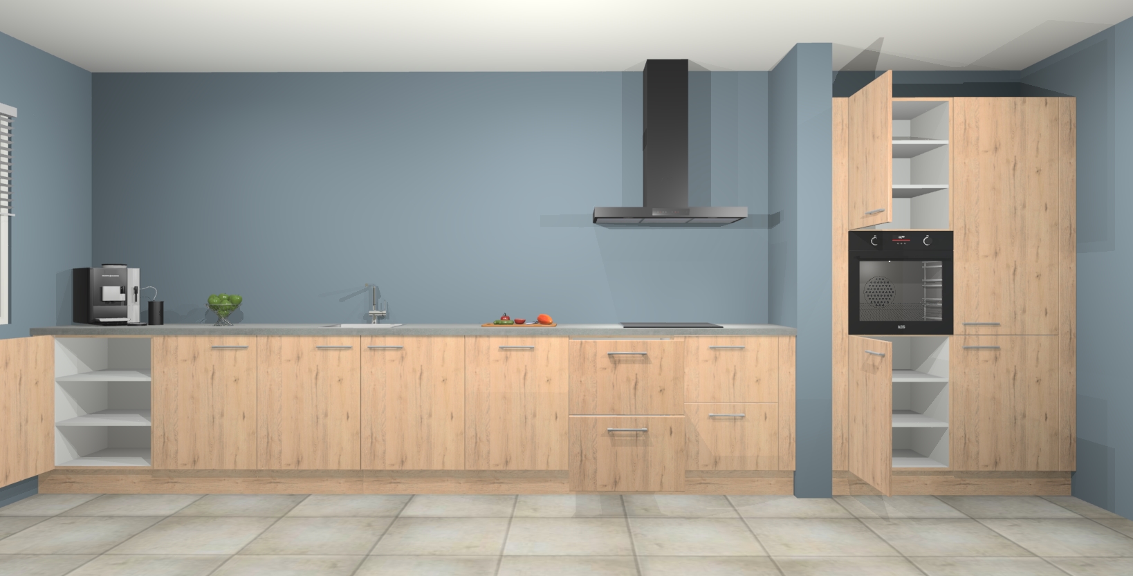 Met de Madera natuur keuken Elzas Maakt u van uw keuken het pronkstuk van uw huis. Stijlvol en toch praktisch, de nieuwste look voor wie meer waarde en charme aan zijn huis wil toevoegen. Met prachtige handgrepen die zich lenen voor een klassieke stijlbron, zal u niet teleurgesteld zijn in het resultaat. De soft-close deurscharnieren geven een gevoel van luxe omdat ze zachtjes bewegen zonder storende of krakende geluiden te veroorzaken.