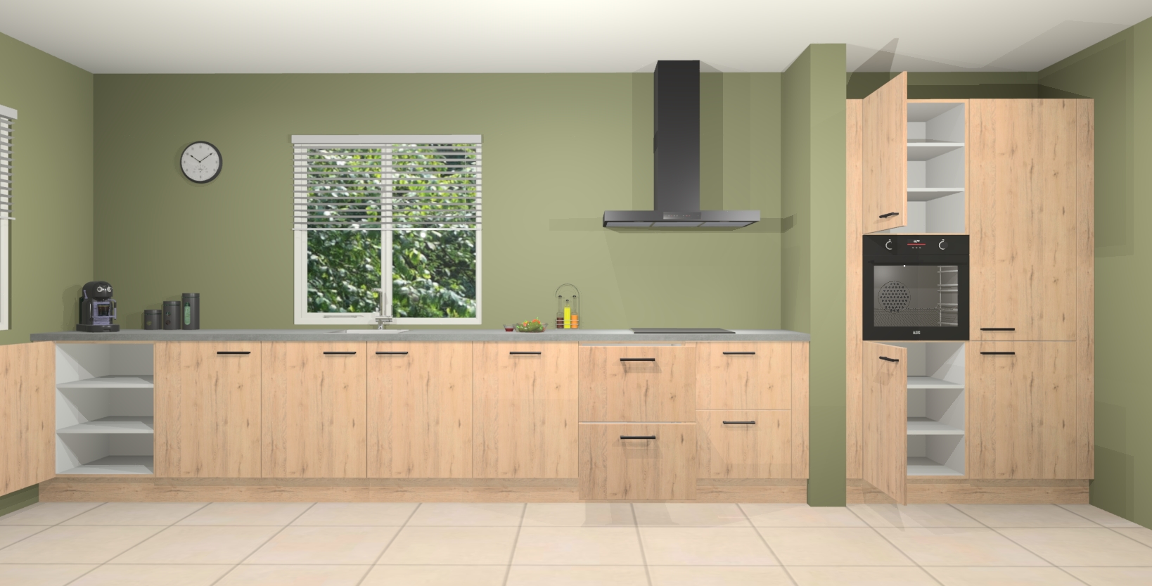 Met de Madera natuur keuken Elzas Maakt u van uw keuken het pronkstuk van uw huis. Stijlvol en toch praktisch, de nieuwste look voor wie meer waarde en charme aan zijn huis wil toevoegen. Met prachtige handgrepen die zich lenen voor een klassieke stijlbron, zal u niet teleurgesteld zijn in het resultaat. De soft-close deurscharnieren geven een gevoel van luxe omdat ze zachtjes bewegen zonder storende of krakende geluiden te veroorzaken.