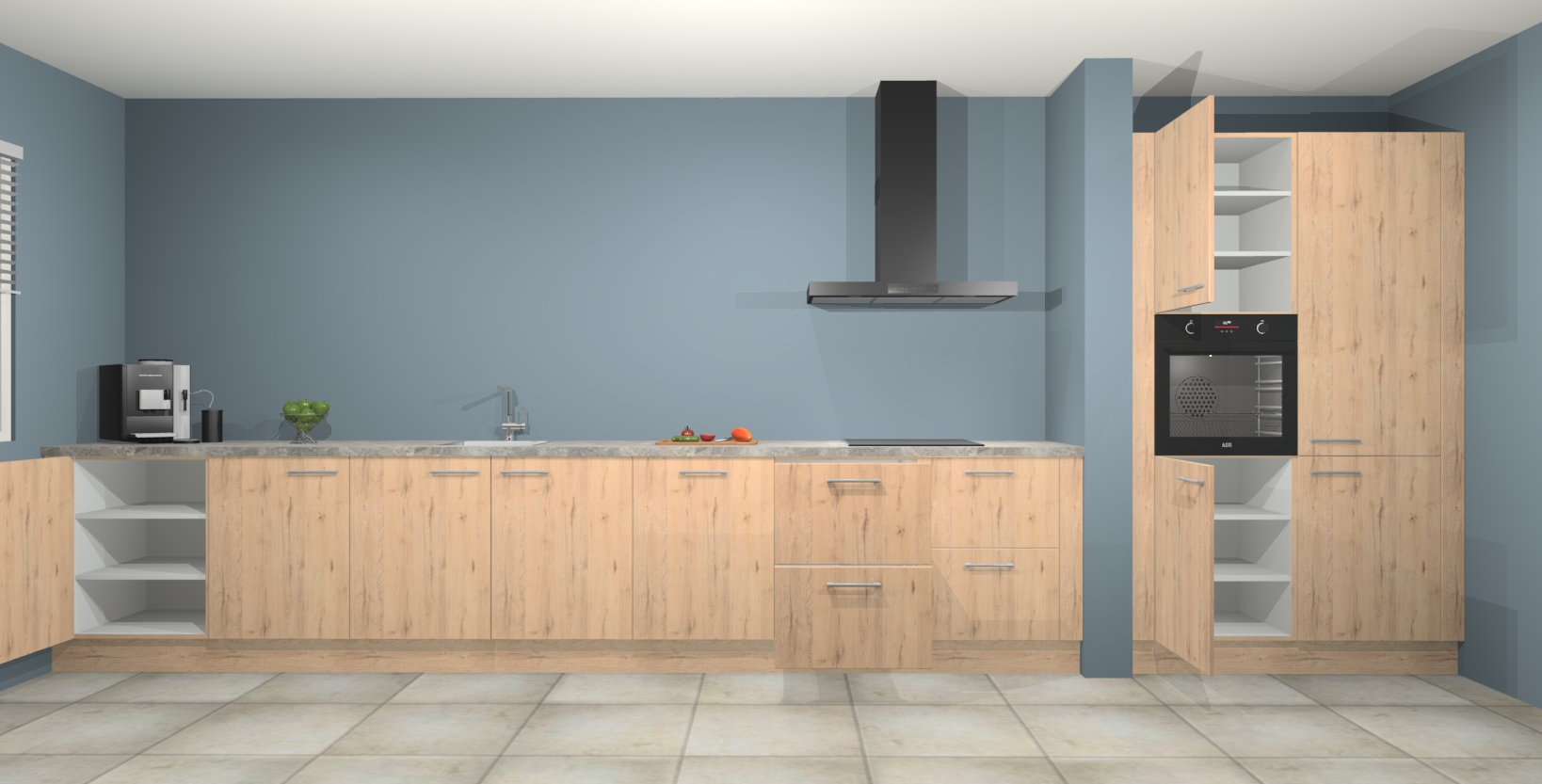 Met de Madera natuur keuken Elzas Maakt u van uw keuken het pronkstuk van uw huis. Stijlvol en toch praktisch, de nieuwste look voor wie meer waarde en charme aan zijn huis wil toevoegen. Met prachtige handgrepen die zich lenen voor een klassieke stijlbron, zal u niet teleurgesteld zijn in het resultaat. De soft-close deurscharnieren geven een gevoel van luxe omdat ze zachtjes bewegen zonder storende of krakende geluiden te veroorzaken.