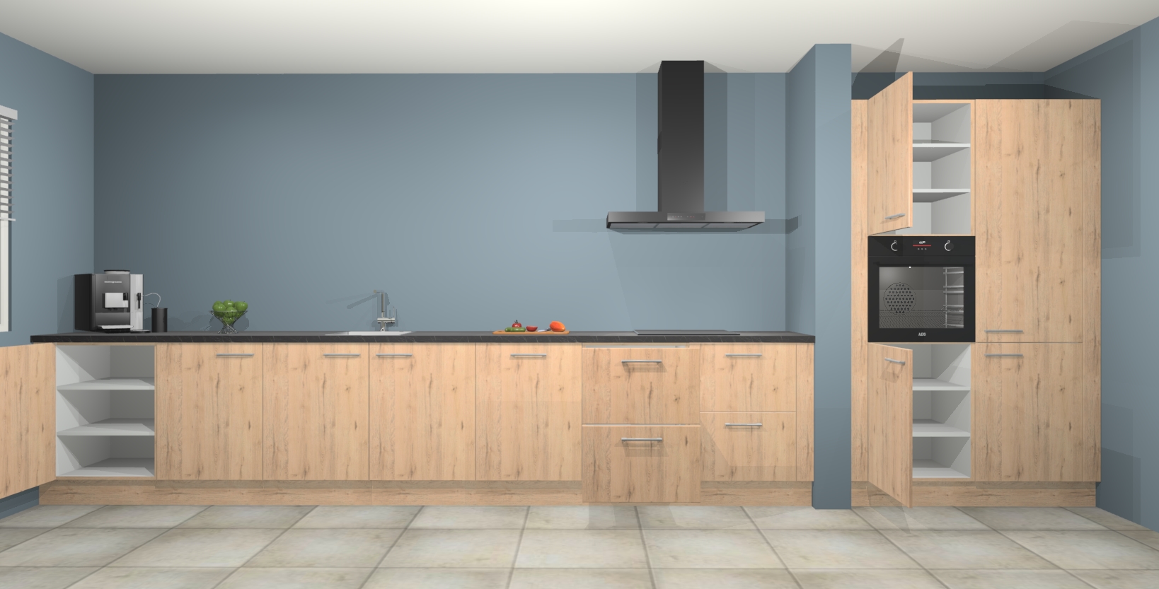Met de Madera natuur keuken Elzas Maakt u van uw keuken het pronkstuk van uw huis. Stijlvol en toch praktisch, de nieuwste look voor wie meer waarde en charme aan zijn huis wil toevoegen. Met prachtige handgrepen die zich lenen voor een klassieke stijlbron, zal u niet teleurgesteld zijn in het resultaat. De soft-close deurscharnieren geven een gevoel van luxe omdat ze zachtjes bewegen zonder storende of krakende geluiden te veroorzaken.