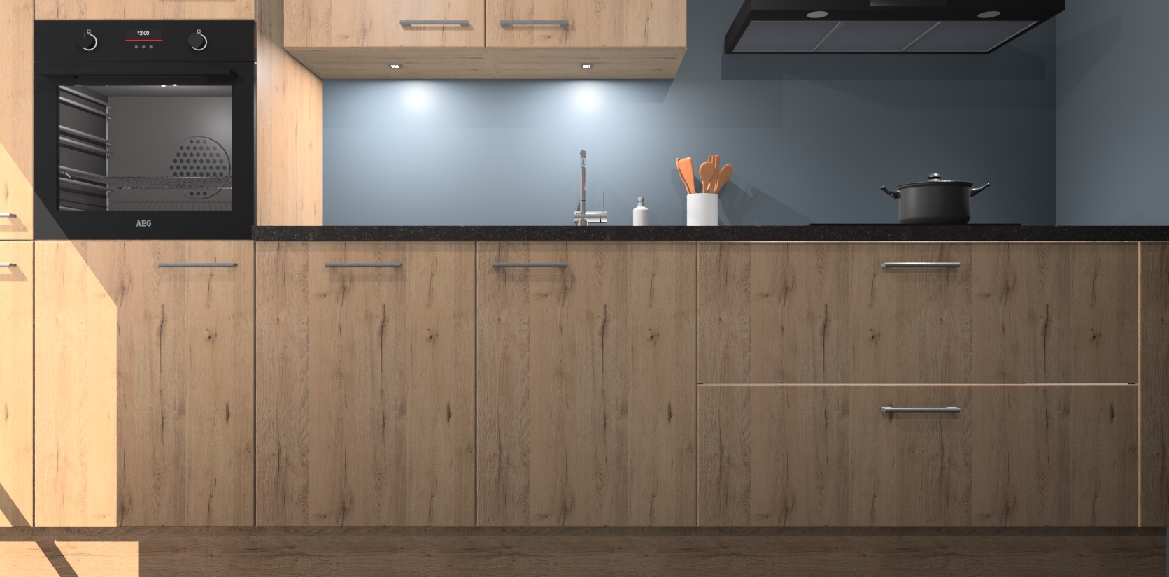 De Madera Natuur keuken Groenland: waar tijdloze elegantie en robuuste constructie elkaar ontmoeten. Door de combinatie van luxe en veerkracht zal deze keuken u de komende jaren goed van dienst zijn. De prachtige zachte look zorgt voor een tijdloze esthetiek die niet zal slijten met de tijd, waardoor u een decoratieve toevoeging aan uw huis creëert. Onze hoogwaardige kasten zijn gebouwd om lang mee te gaan en is zeer duurzaam en bestand tegen krassen, waardoor het ideaal is voor drukke gezinnen.