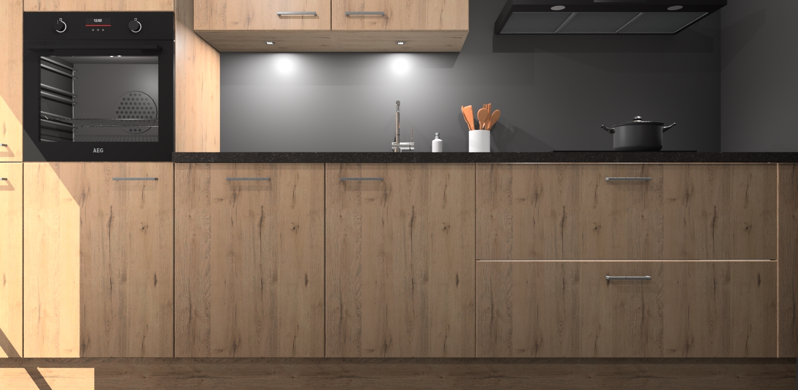 De Madera Natuur keuken Groenland: waar tijdloze elegantie en robuuste constructie elkaar ontmoeten. Door de combinatie van luxe en veerkracht zal deze keuken u de komende jaren goed van dienst zijn. De prachtige zachte look zorgt voor een tijdloze esthetiek die niet zal slijten met de tijd, waardoor u een decoratieve toevoeging aan uw huis creëert. Onze hoogwaardige kasten zijn gebouwd om lang mee te gaan en is zeer duurzaam en bestand tegen krassen, waardoor het ideaal is voor drukke gezinnen.