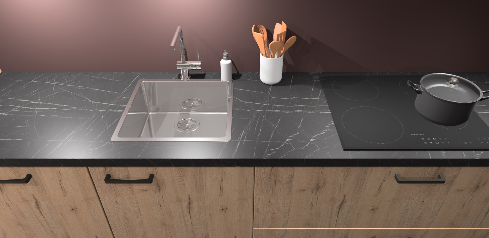 - Bij een hoekwerkblad zijn de hoeken in gevreesd en op maat gemaakt