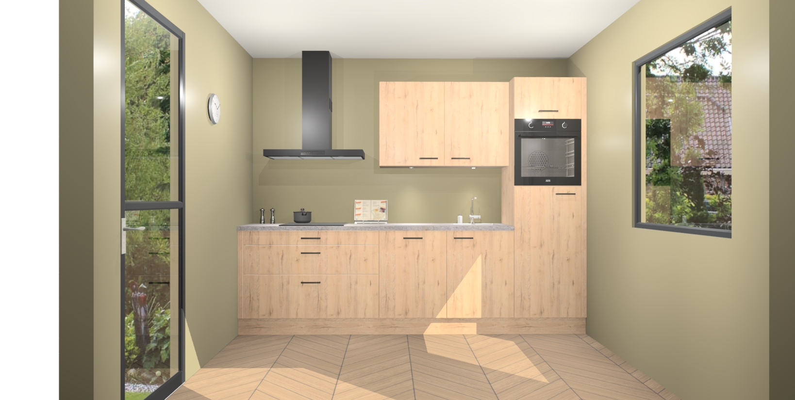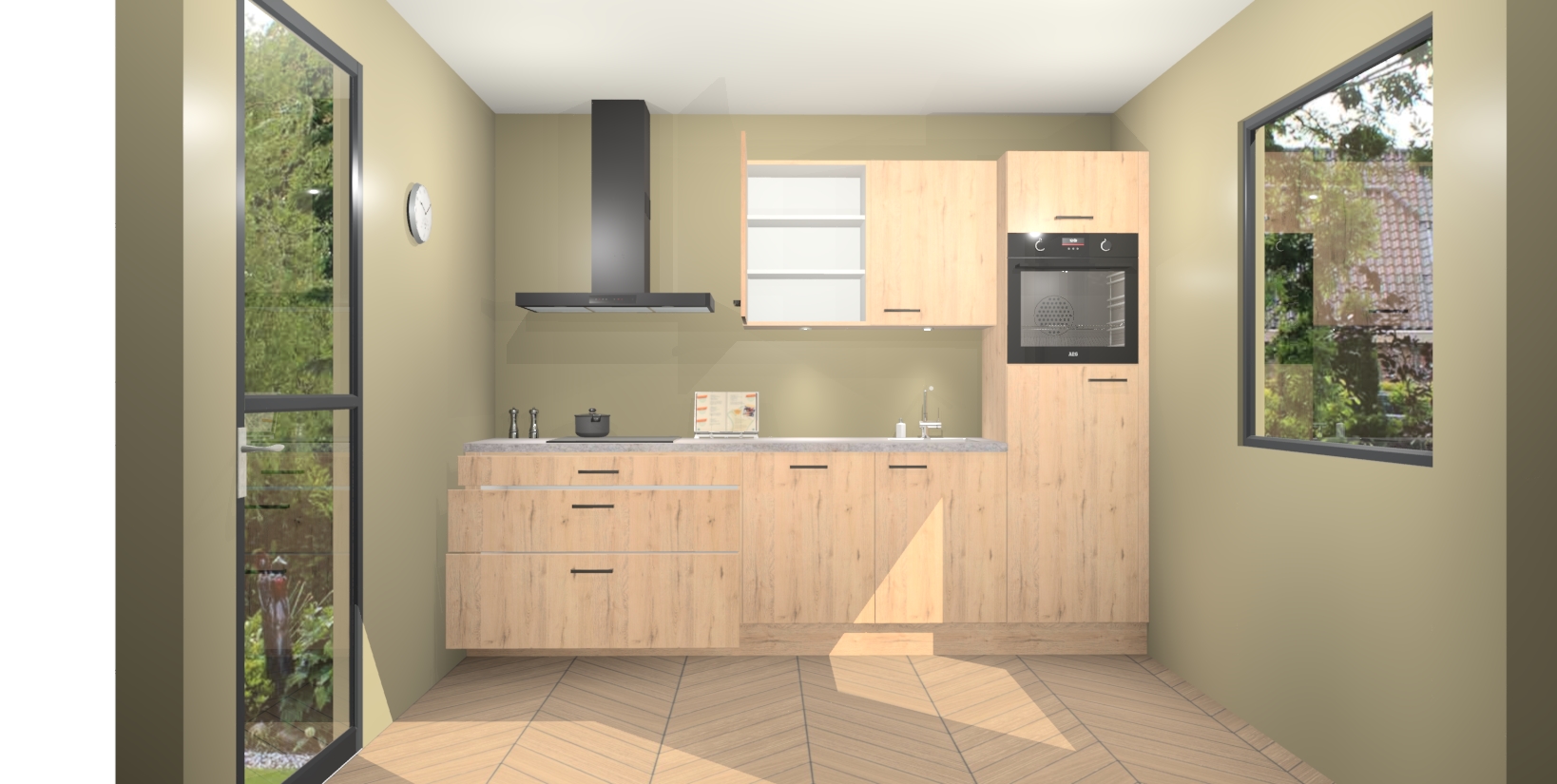 Deze Madera Natuur keuken van topklasse is ongeëvenaard mooi en is meer dan alleen een lust voor het oog. Hij bevat ook alle nieuwste functies die u nodig hebt om maaltijden te bereiden en te entertainen als een pro. Onze inbouwapparaten zijn handig en geraffineerd en dankzij onze vijfsterrenfuncties maakt u met gemak uw favoriete gerechten klaar. Bovendien zijn de maaltijden snel klaar dankzij ons snelle afleversysteem, waardoor u tijd bespaart zonder aan kwaliteit of smaak in te boeten!