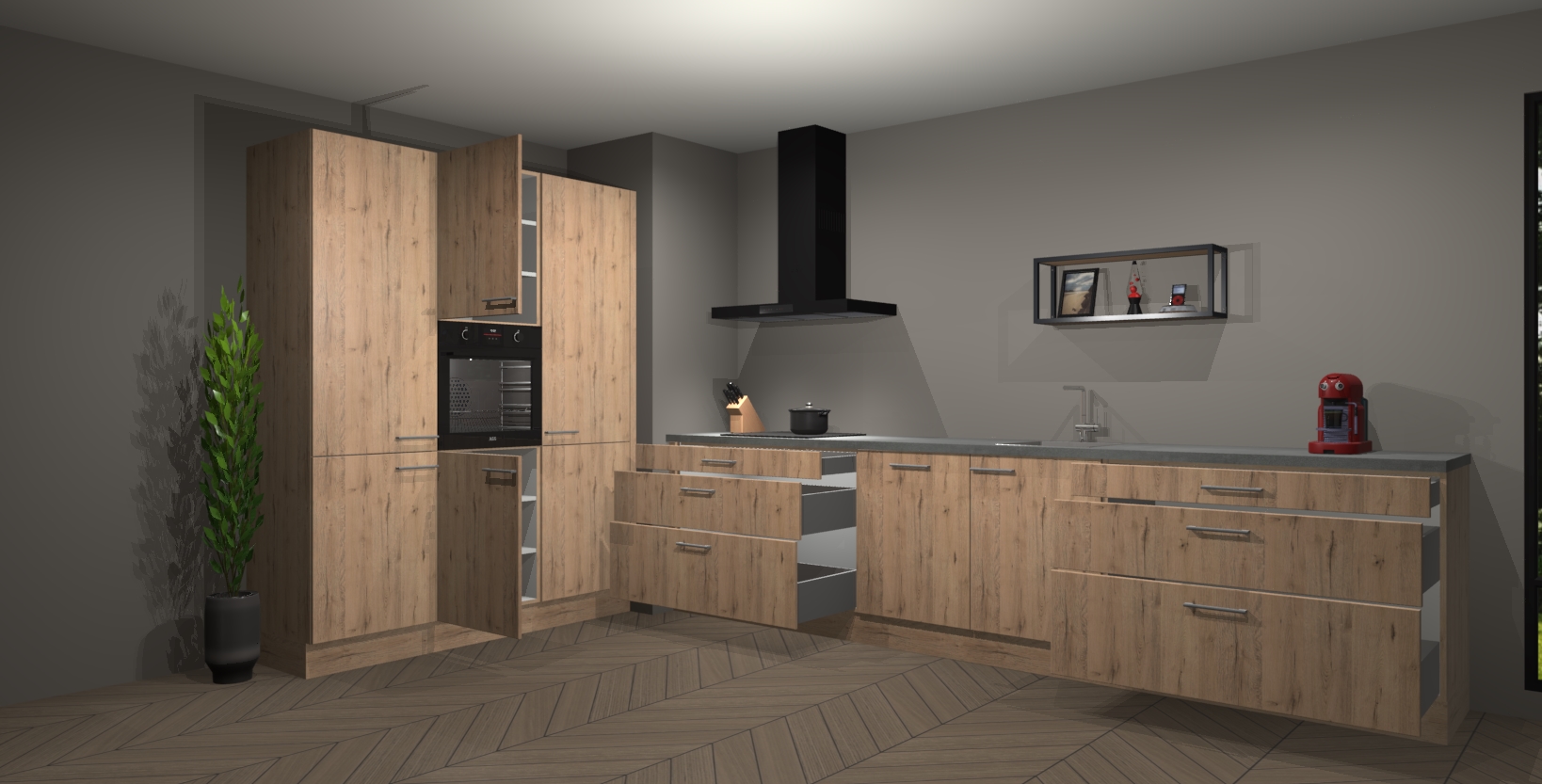 Inclusief plinten, stelpoten en werkblad