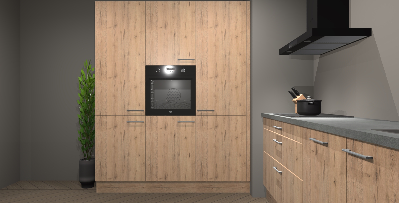 De softclose deuren openen en sluiten is ook heel eenvoudig - geniet van een moeiteloze keukenervaring, zelfs als er kinderen rondlopen. Voor extra gemak bij het plaatsen van uw bestelling bieden we ook een upgrade naar een kookplaat met geïntegreerde afzuiging.
