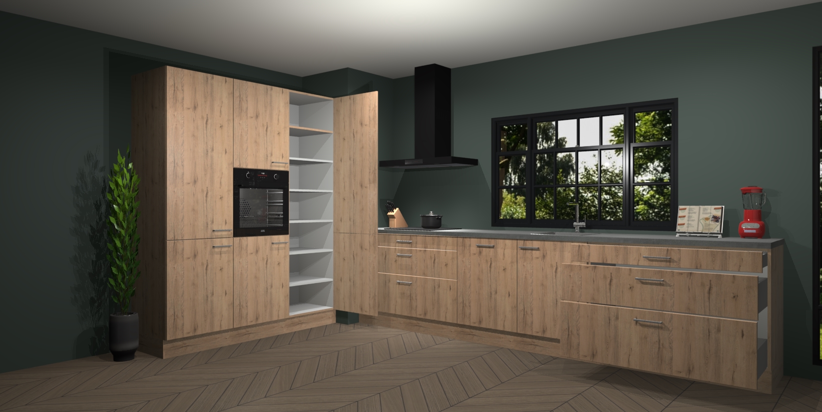 De softclose deuren openen en sluiten is ook heel eenvoudig - geniet van een moeiteloze keukenervaring, zelfs als er kinderen rondlopen. Voor extra gemak bij het plaatsen van uw bestelling bieden we ook een upgrade naar een kookplaat met geïntegreerde afzuiging.